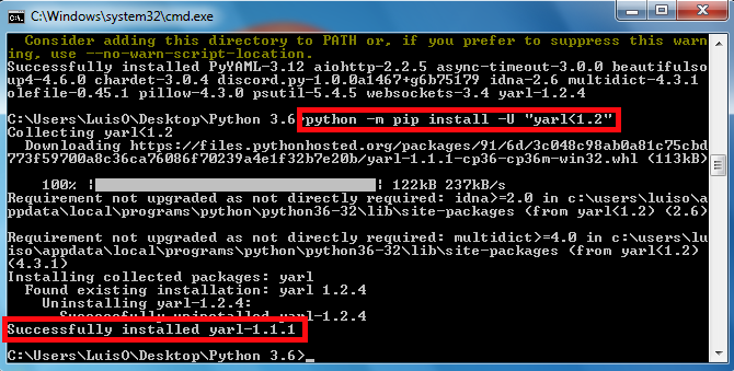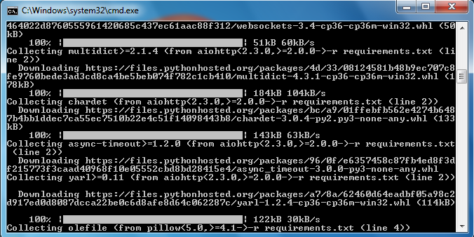 python -m pip install -U -r requirements.txtit'll install quite a lot of things and should say it's been successful at the end.