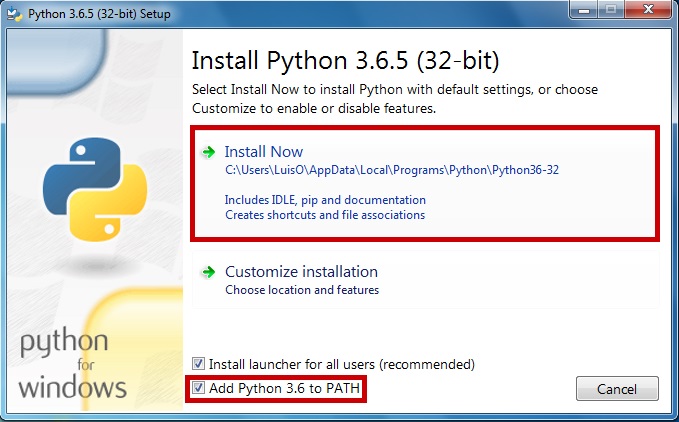 - Next install PYTHON 3.6 and make sure to select the option to add Python to
