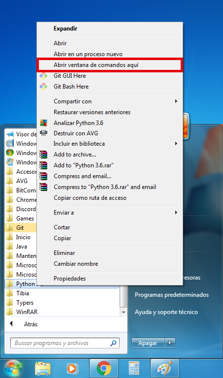 - Hold SHIFT right-click inside the folder python is installed into and click