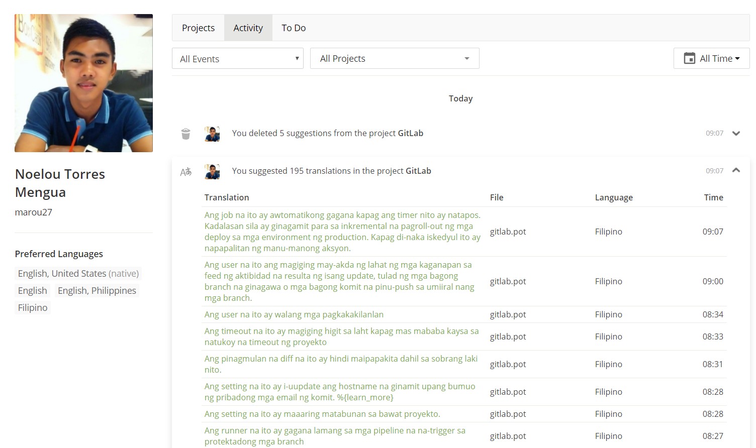 This is your 5th contribution to the translation category and 1st contribution to @gitlab translation.