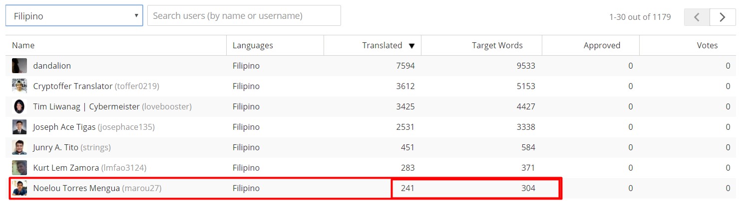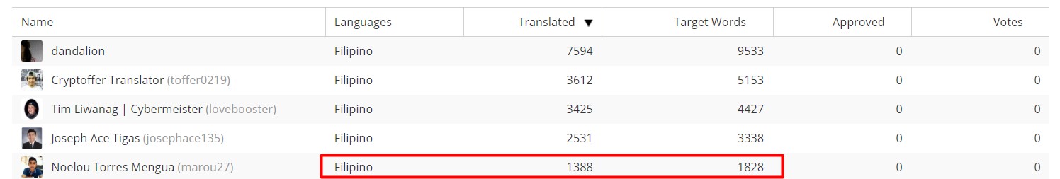 Currently, the Language Moderator for Filipino Team is @ruah and is composed of 5 Approved Translators namely: @toffer, @josephace135, @timliwanag, @dandalion and yours truly, @marou27.