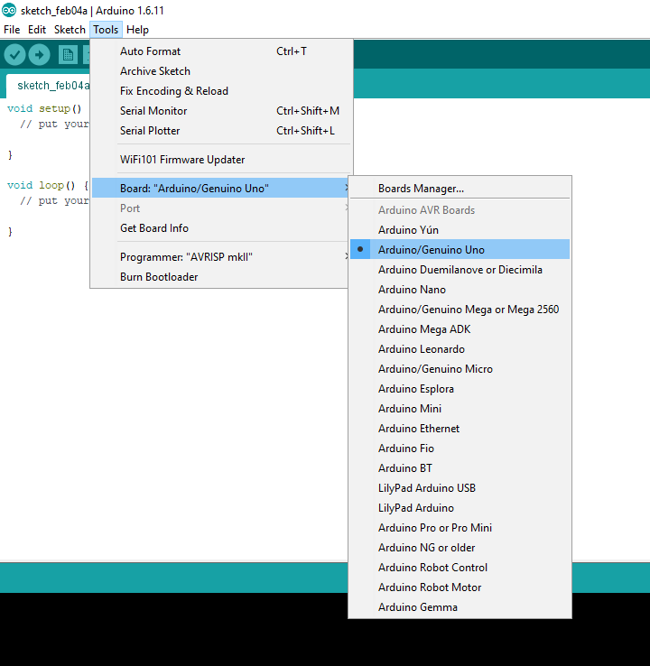 - open the Arduino IDE, go to Tools>board>select Arduino Uno