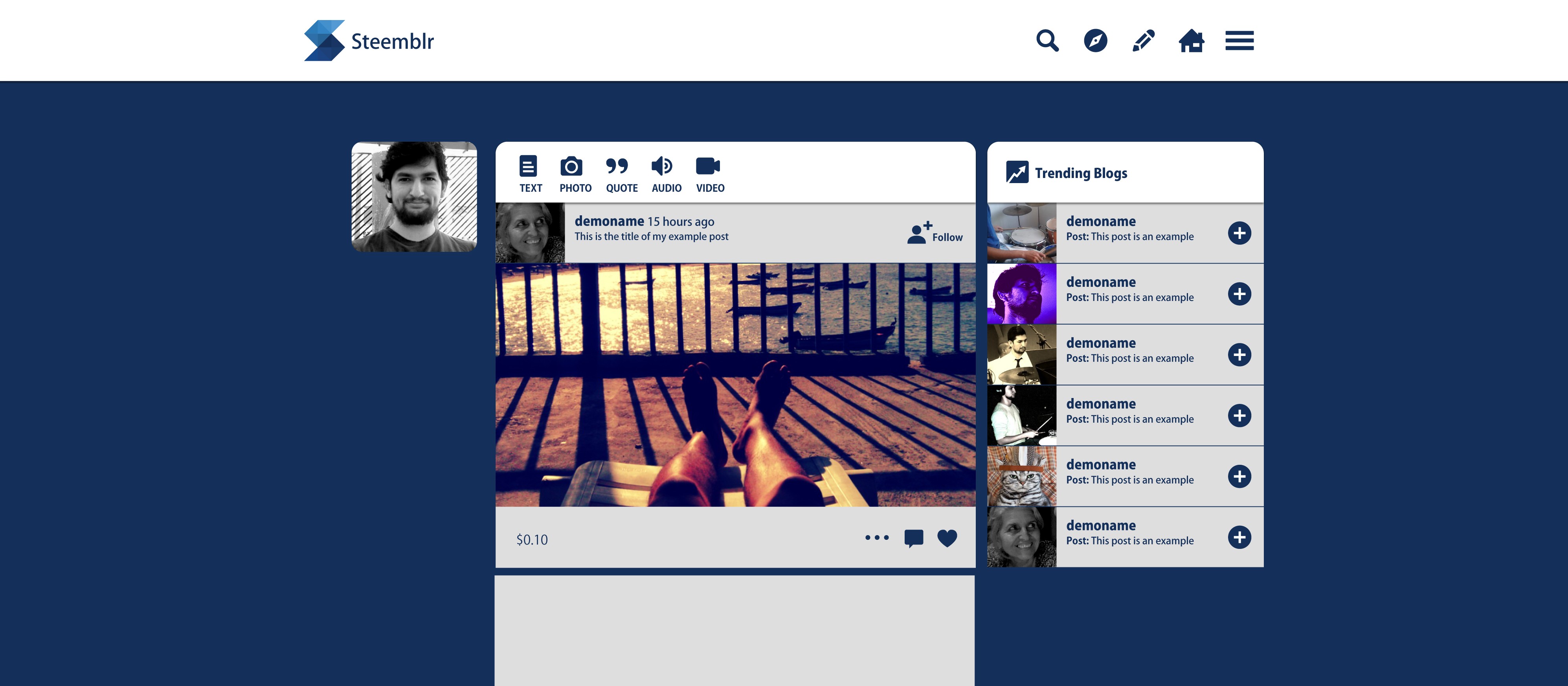 Steemblr is open source microblogging platform powered by steem blockchain . It allows user to post and explore content which is smaller than a traditional blog.