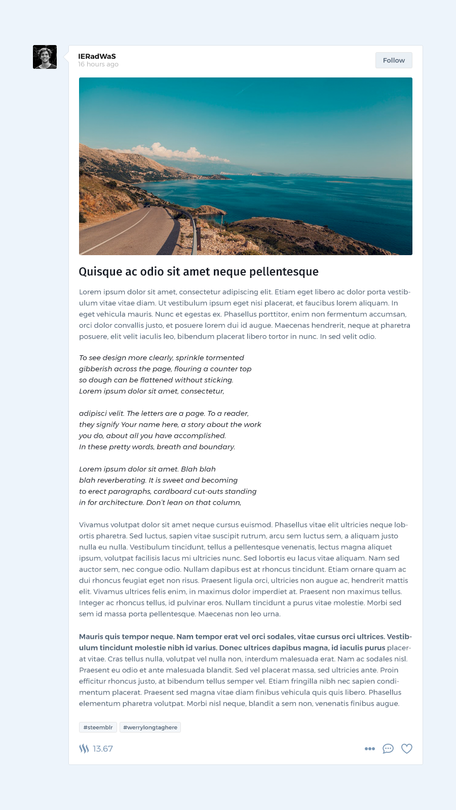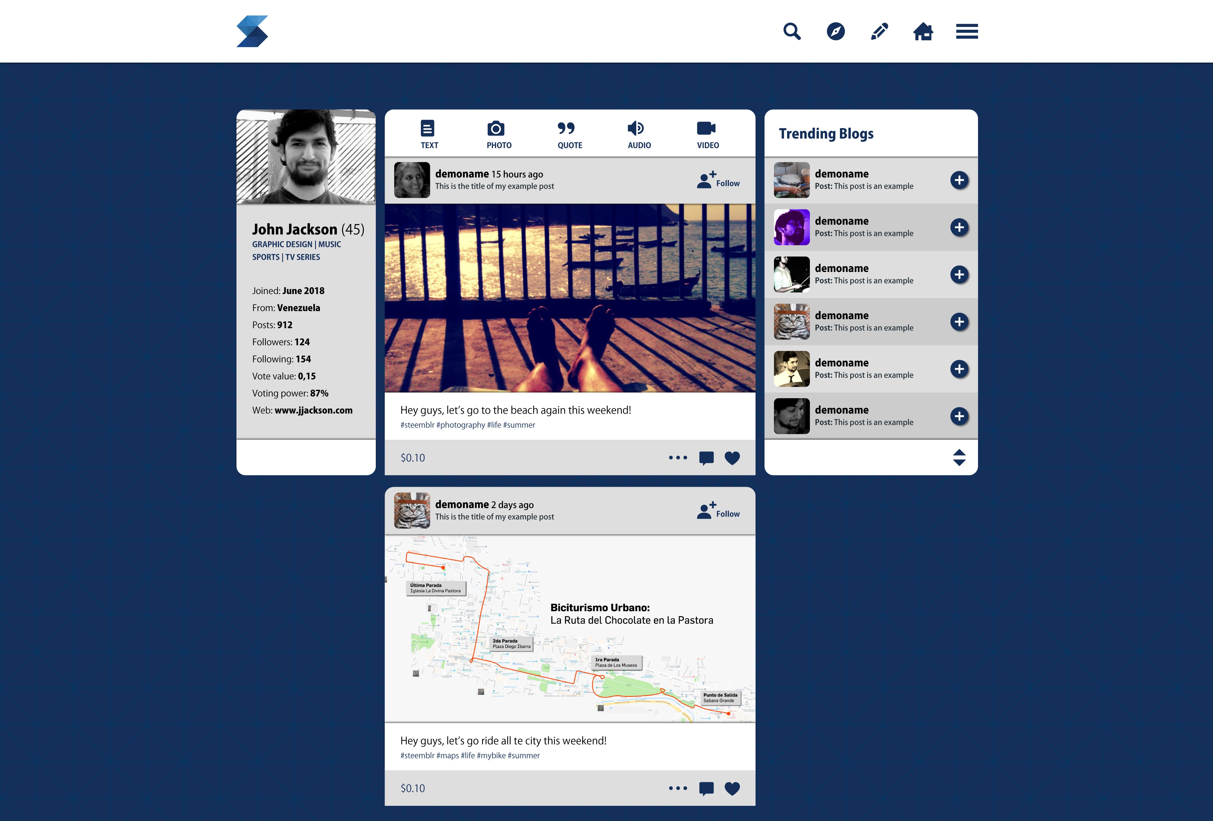 This task request asks for improvement of existing UI of the steemblr web app. I would like to improve colors schemes, dated design and typography.