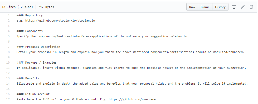 We have the category template that should be followed. This template is concise and properly formatted in a way that anyone can understand what you are trying to contribute. The template serves as a guideline on what is expected from your contribution. The Suggestion category guidelines can be gotten here. The template has many sections that will be fully discussed below.