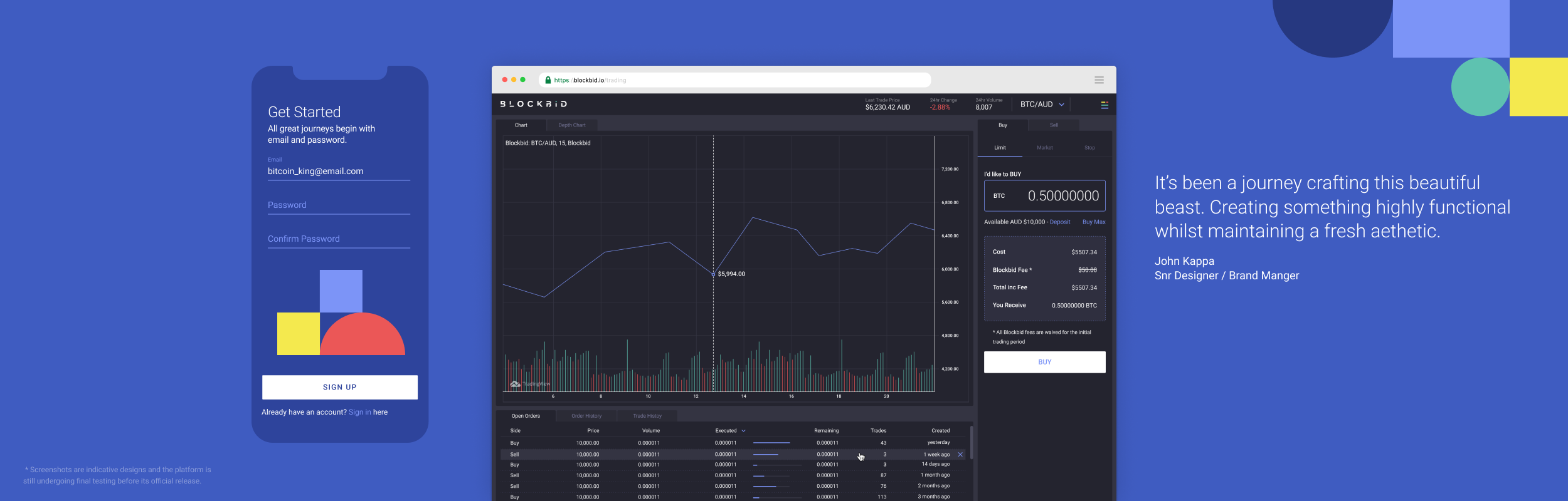 The sparkling, sleek and highly functional finish on our shiny new interface. Our good friends at studio M A S S have dropped a sneaky preview of how Blockbid will look across browser and mobile.