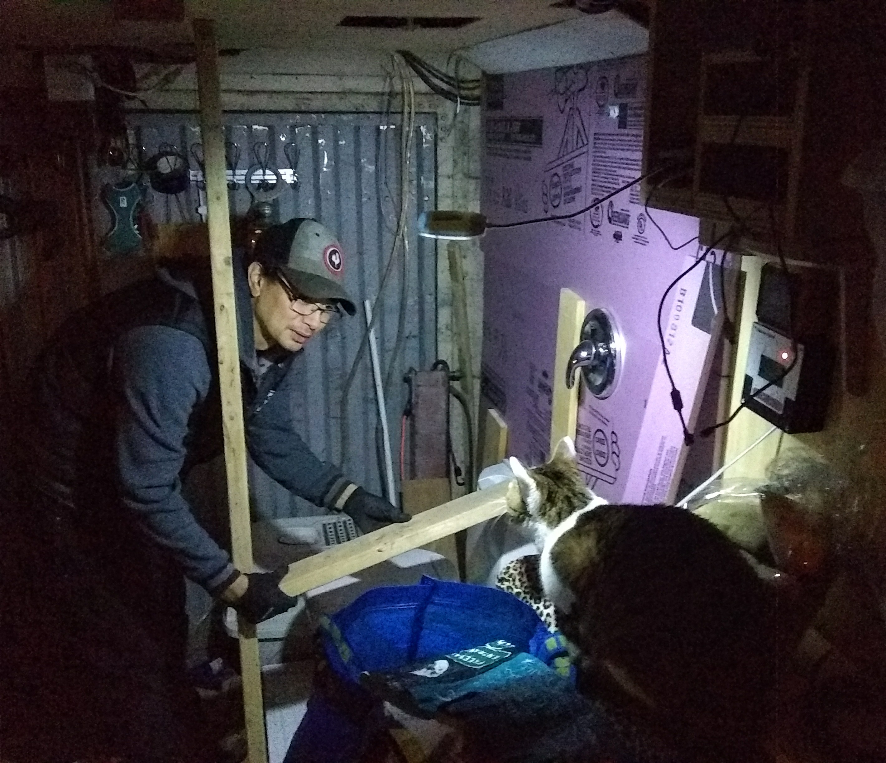 Shane also created some makeshift framing to hold the foam in place overnight: