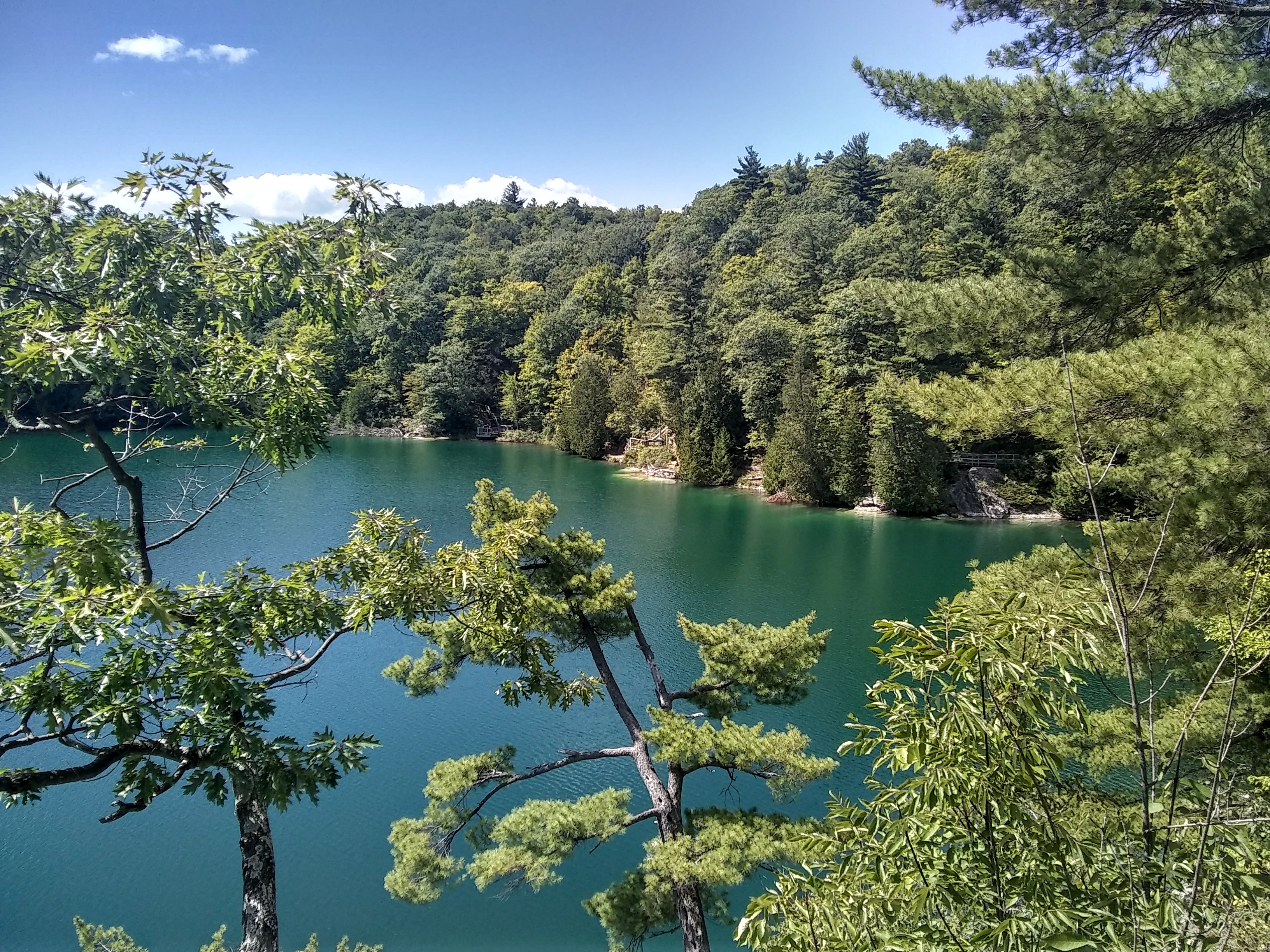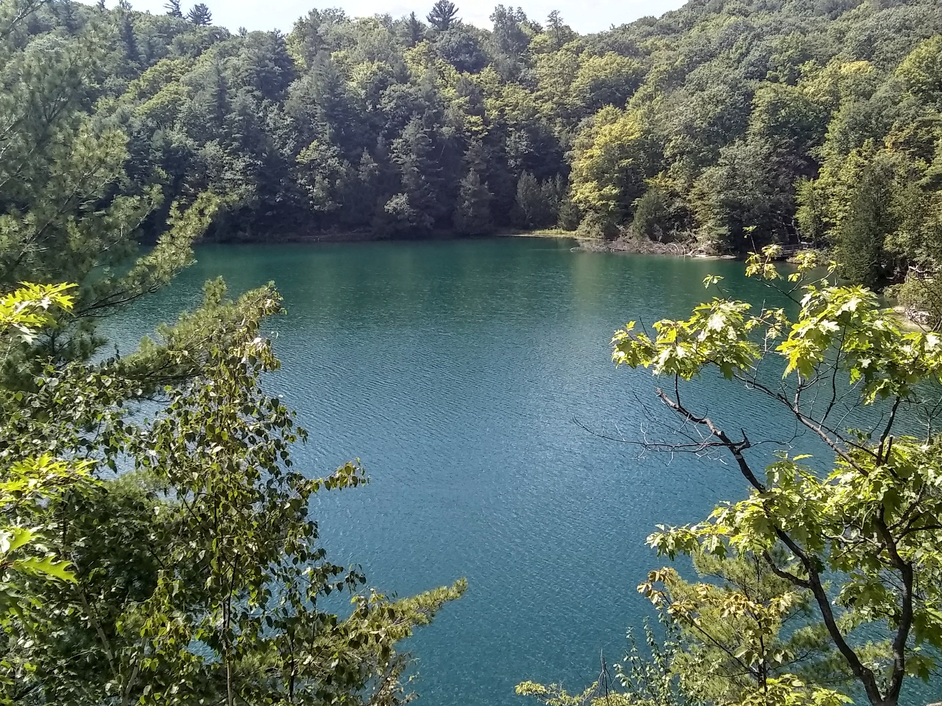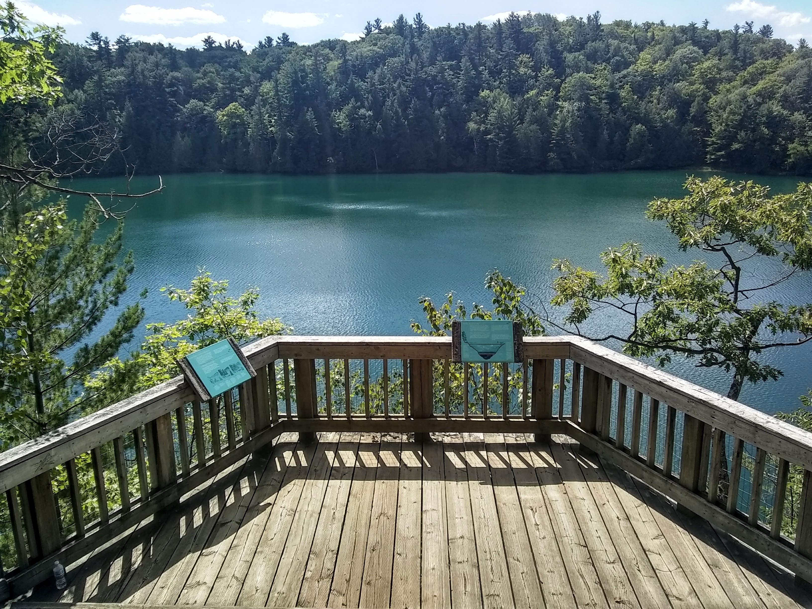 We wrapped up our time in Gatineau with a hike around Pink Lake. It’s a meromictic lake, meaning that it was once more or less a big hole pothole in the sea floor that eventually rose above sea level. Its high rims protect the lake from the winds and other elements, so there’s very little mixing of water in the lake and consequently virtually no oxygen at the bottom. An abundance of algae gives it that otherworldly, turquoise color. It’s a stunner!