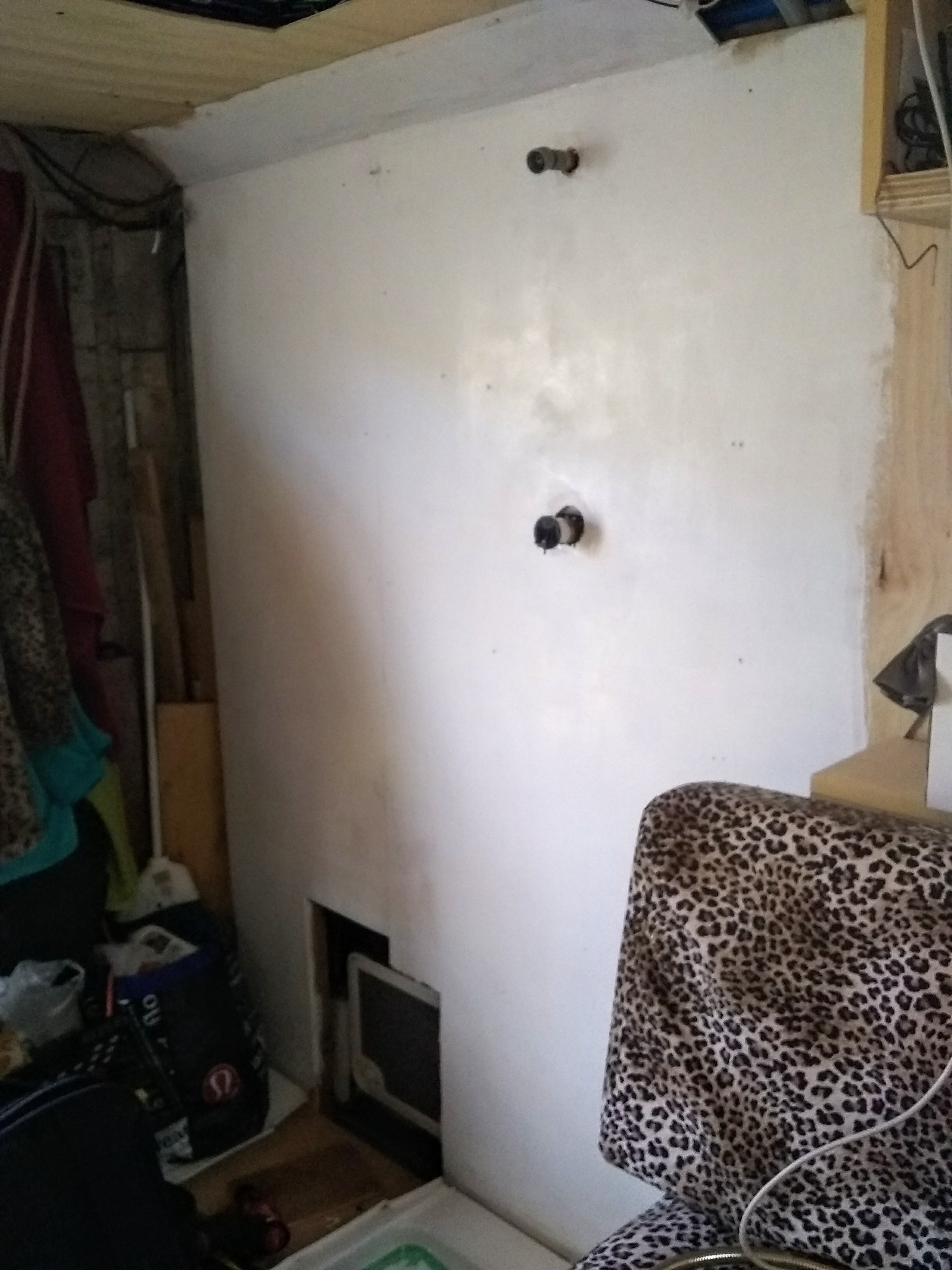 Our next hurdle was to figure out which of the many available shower walls to use. Acrylic is very nice but also very pricey. We had ventured nearly an hour away to an rv repair business that sold parts. We met the owner and told him what we were doing, and he then showed us around. He pulled out some sheets of material and told us that this is what we’re looking for. Great, we agreed that we’d come back for those once we had our waterproof layer up. But when we did go back, one of the employees broke the news that that panel the owner insisted was the right one should actually never touch water. And they only had a couple of samples left of what we needed. Which sent us back to the drawing board. Not going to lie, by this point we really started to hit a wall with the shower wall - even running out of gas (again! I think we underestimated the extra clicks that all of the city driving had eaten up) on the way to this rv repair store that shall not be named.