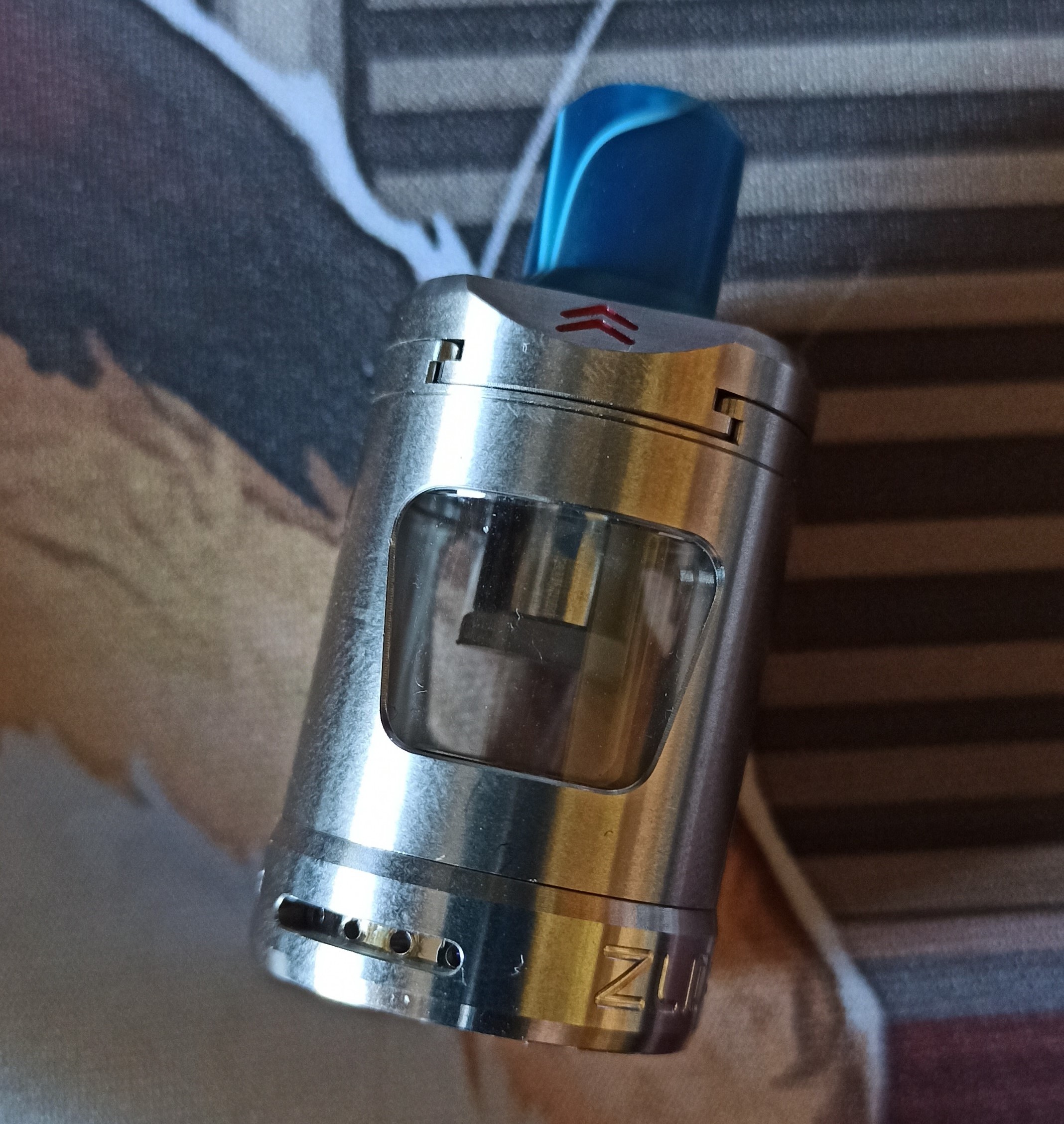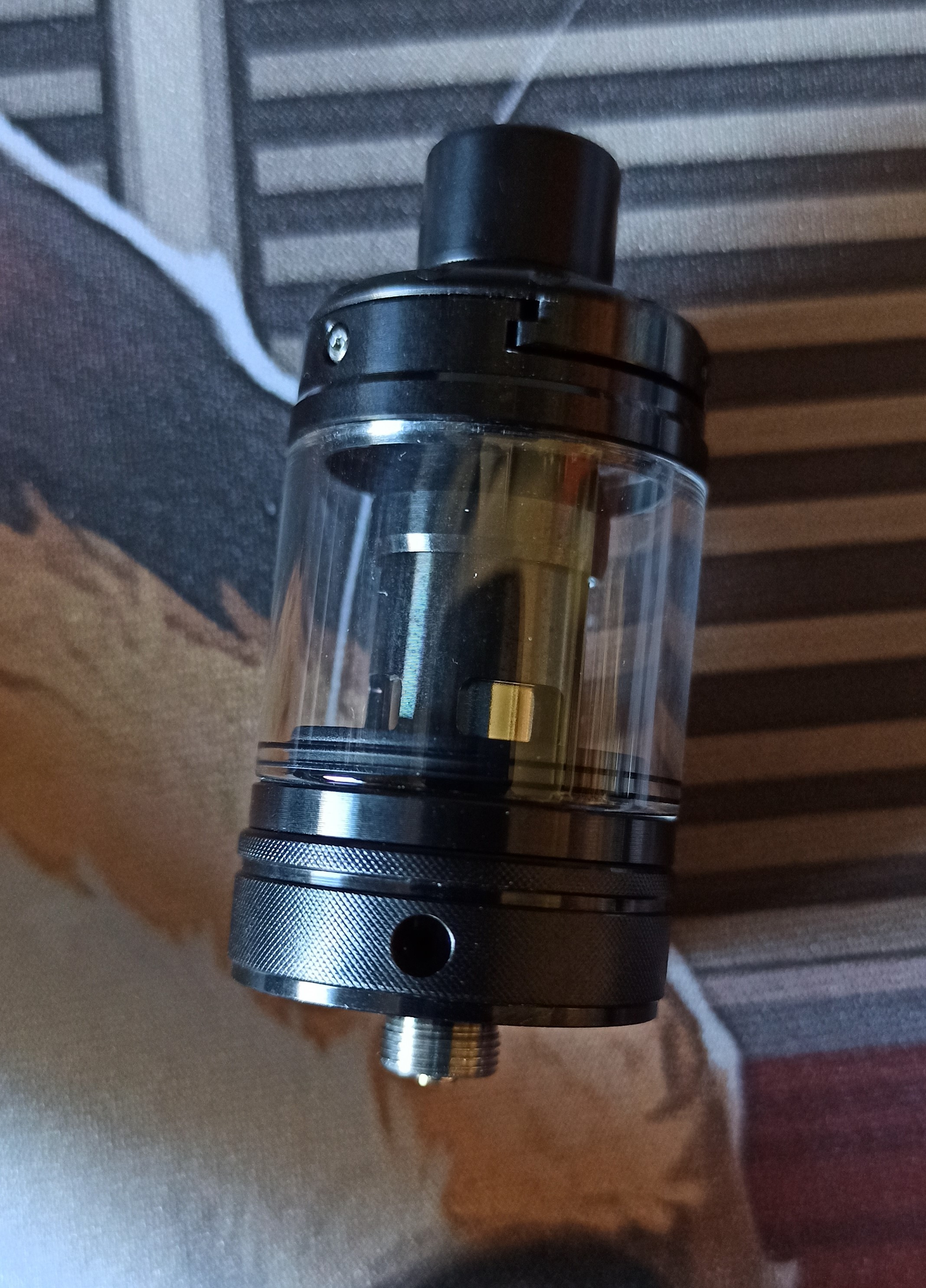 - The Tank(where you put inside coils, and e-juice throught a refill hole, leakproof)