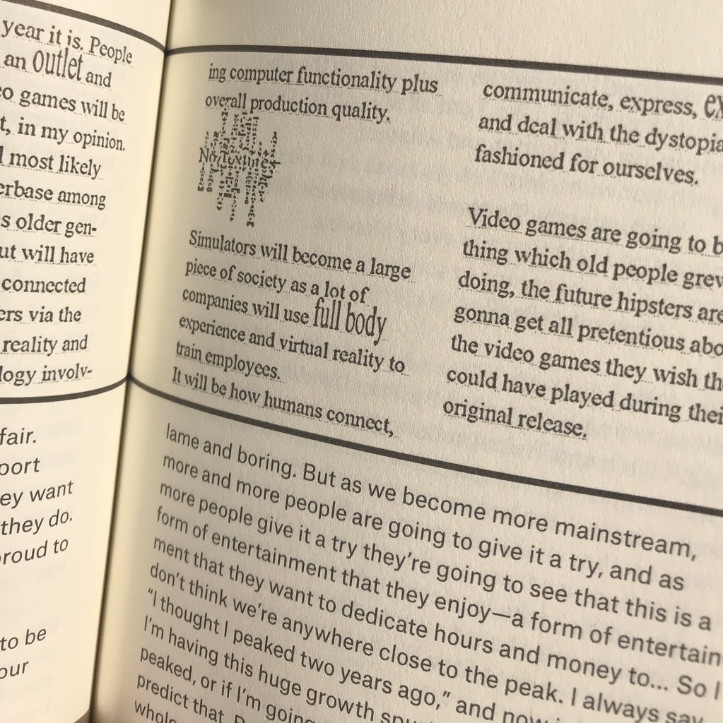 The contributors to this book are mostly those people I watch online. I’m a big fan of everyone in here. Those people I didn’t know beforehand I now watch regularly. SO I guess it's really a question of why I watch who I watch! I wanted to balance some different pockets of the content creation world. So we have streamers, commentators (all Starcraft…), and new outlets all represented. And beyond that balance, I wanted to offer a little outside perspective. So we have an interview with someone who actually makes games, and an interview with an artist who hacks and repurposes games to make art. Overall, however, the main editorial mission was to understand the experience of being a content creator or a streamer. To understand what it feels like to take on that professional mantel and how that feeling engenders certain modes of audience interaction and certain expectations for the future of gaming. Because that future is on track to be exceptionally social and exceptionally profitable. And that seems like a phenomenon worthy of contemplation.