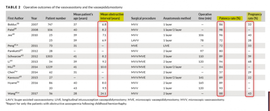 Vasovasostomy and vasoepididymostomy: Review of the procedures, outcomes, and predictors of patency and pregnancy over the last decade - Takeshi Namekawa | Takashi Imamoto | Mayuko Kato | Akira Komiya | Tomohiko Ichikawa - Reprod Med Biol. 2018 Oct; 17(4): 343–355.