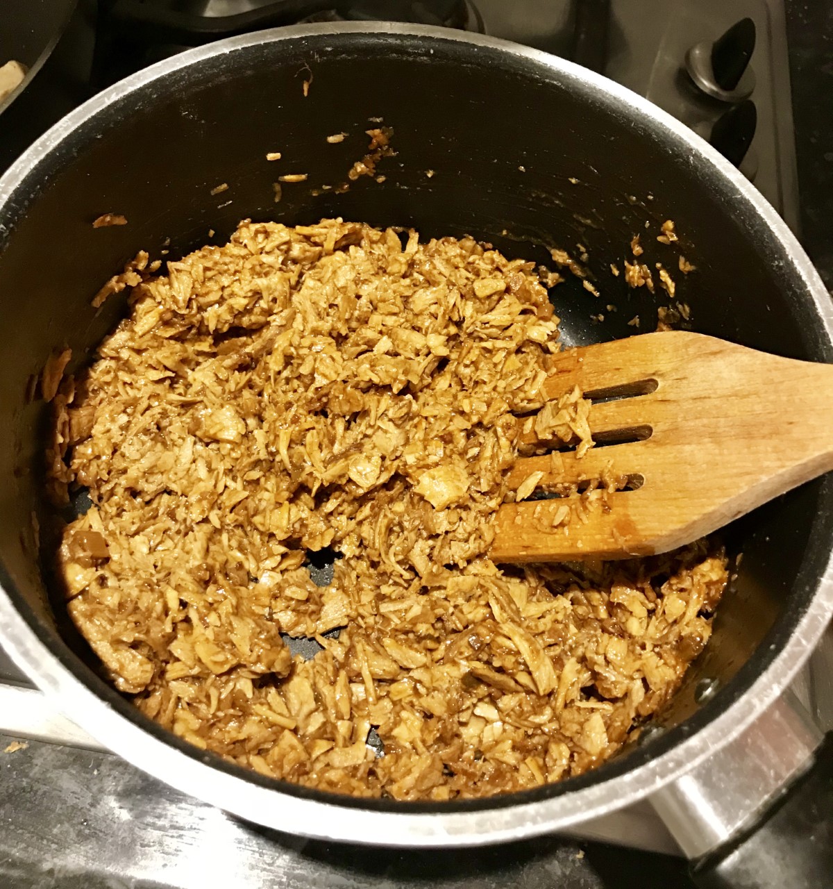 - Add the hoisin sauce to the 'duck'.