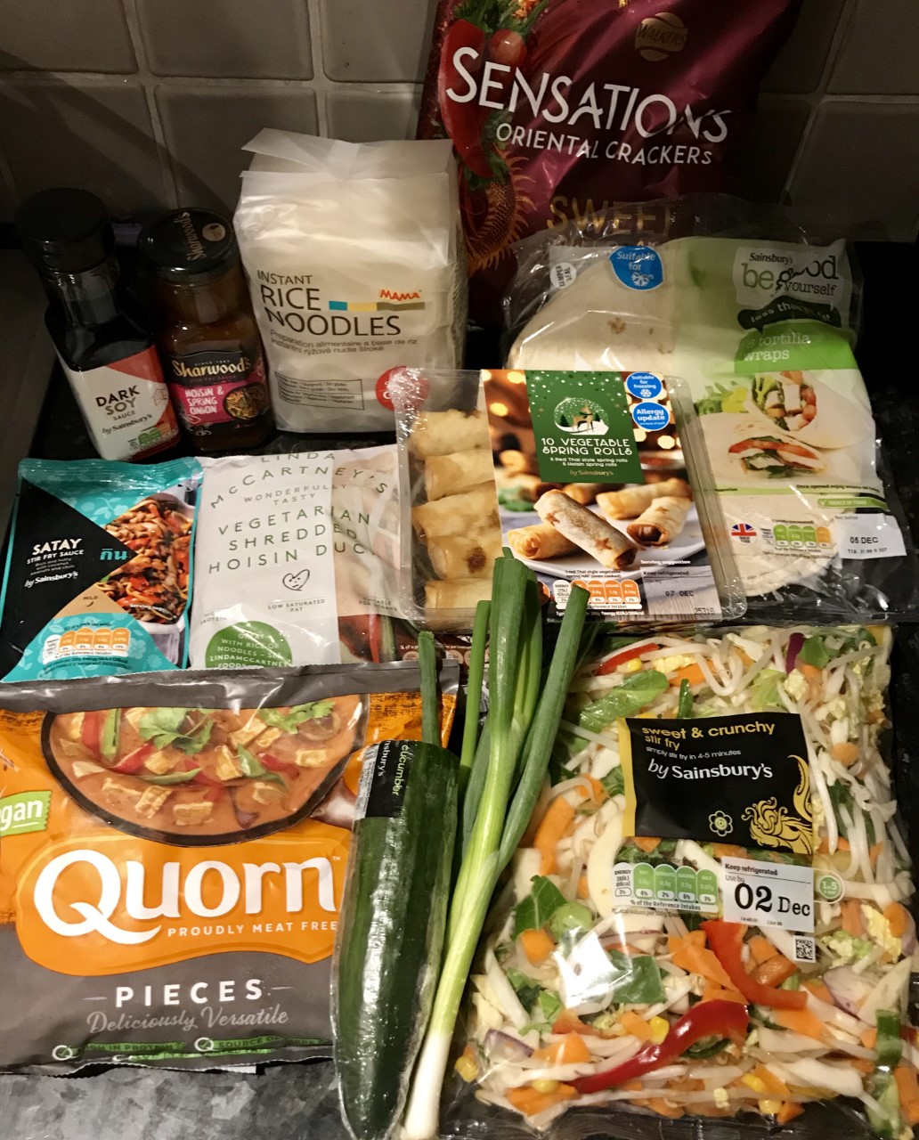 - 1 pack vegan 'mock duck'- I used Linda McCartney's Shredded Hoisin Duck but there are other good brands on the market