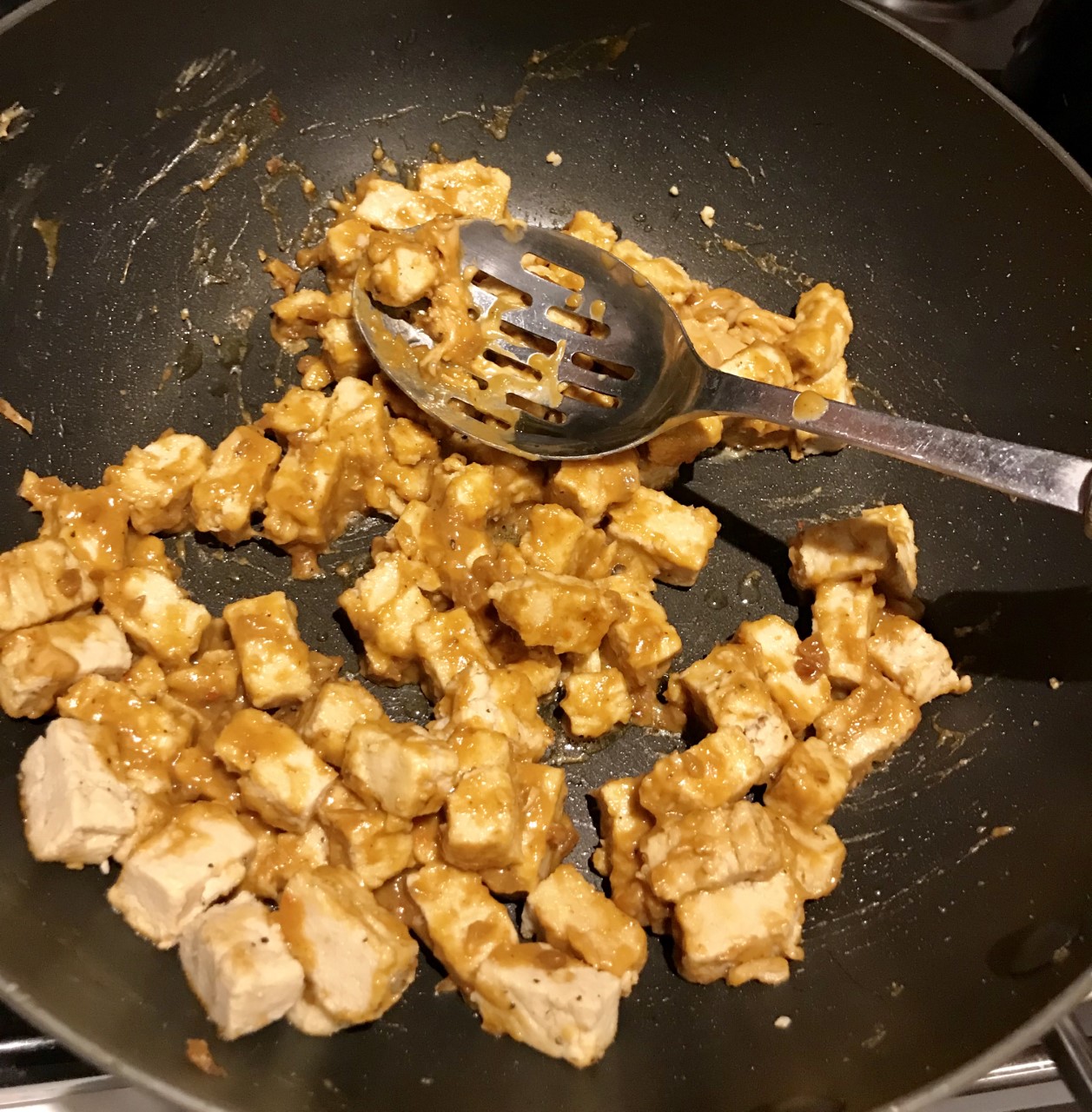 - Add the satay sauce to the 'chicken'.