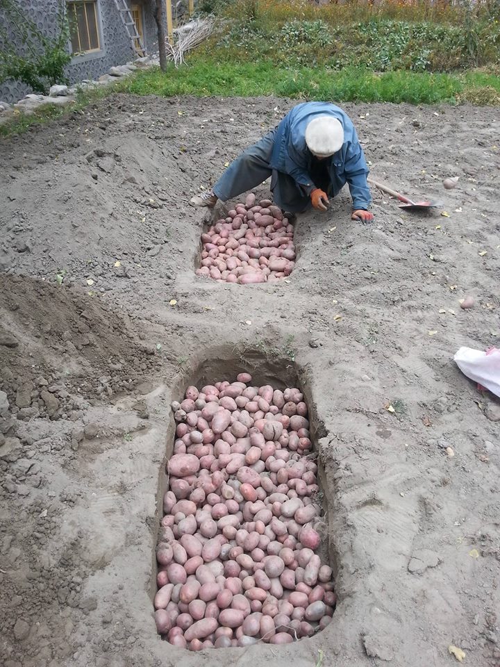A farmer buries freshly harvested potatoes in different part of the countries, ahead of the harsh winters. Buried under the frozen earth, the potatoes remain fresh, and usable, after several months.