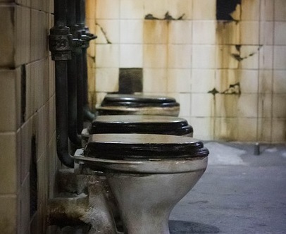 Dicen que el fantasma de un hombre habita este baño. Nadie se atreve a entrar desde aquella vez que un niño fue a orinar sin su padre y vio al espectro sentado en la poceta.