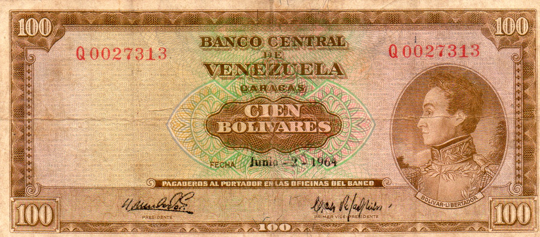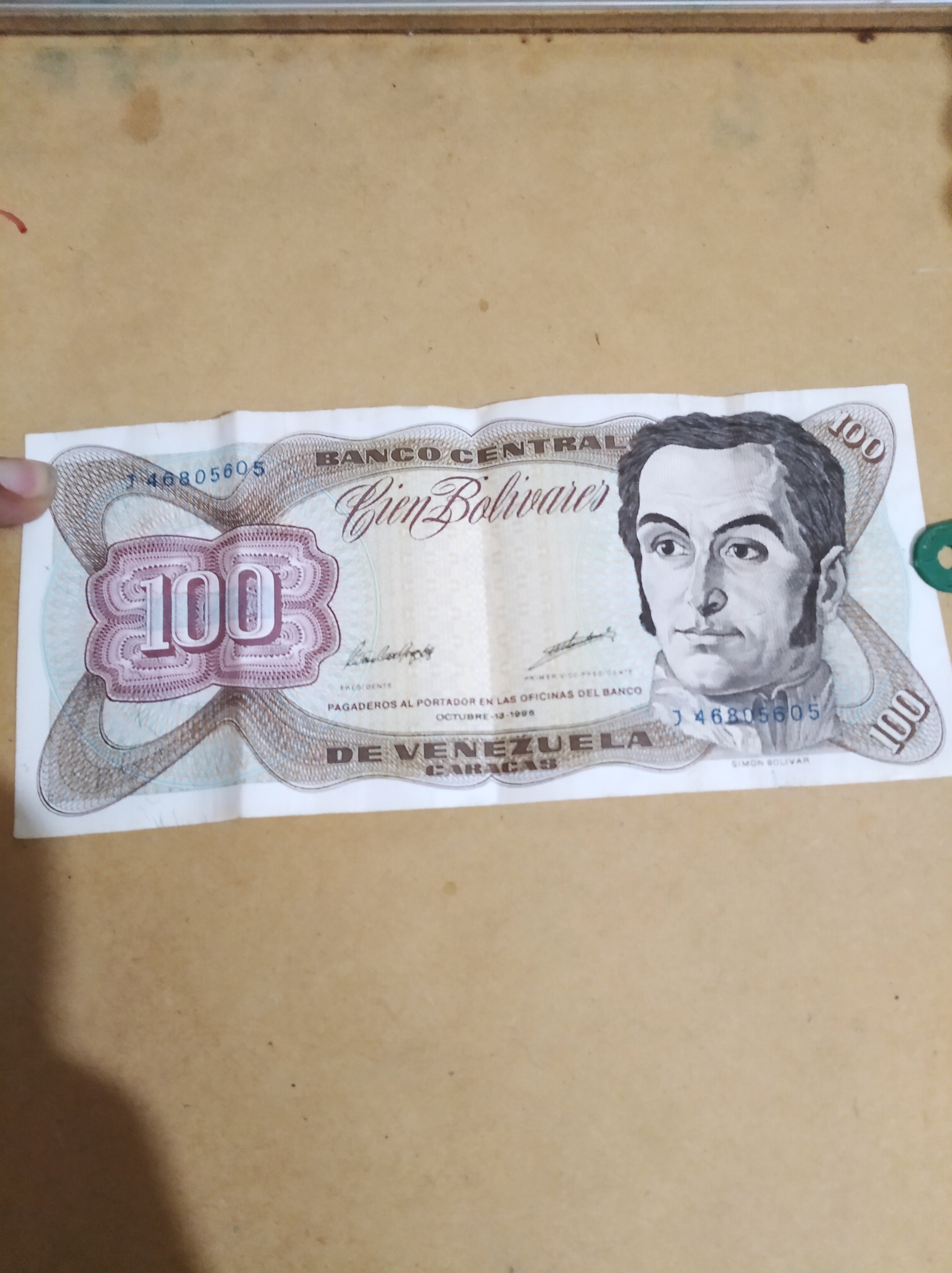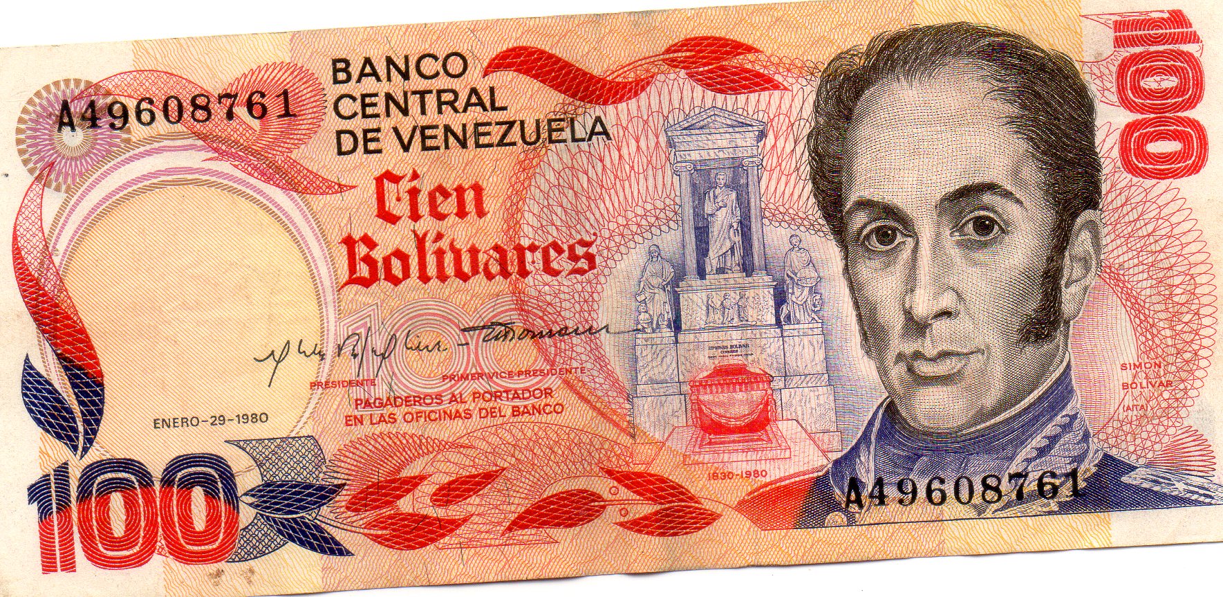 Conservo este billete de 100bolivares del año 1980.