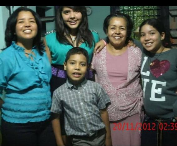 En está última fotografía, mis hijos están más grandes de ocho años Saúl, mi niña once años y mi sobrina hija de catorce años, gracias a que la cámara tiene la fecha exacta cuando fue tomada 20 de noviembre 2012 y la hora 2:39 pm, aunque recuerdo que la cámara tenía programada la fecha errónea fue tomada el 21 de noviembre, día de cumpleaños de Andrea mi hija, por eso estábamos arreglados ese día, en esa fotografía los niños están más grandes, aunque no es actual, sus edades en la actualidad es de veintiún años Saúl Andrés, veinticuatro Andrea y veintisiete Mariángel. Este bello recuerdo fue captado igualmente en el porche de las casa de mis padres, en ella salgo yo también muchos años han pasado de ese instante, estamos acompañados de mi bella Madre.