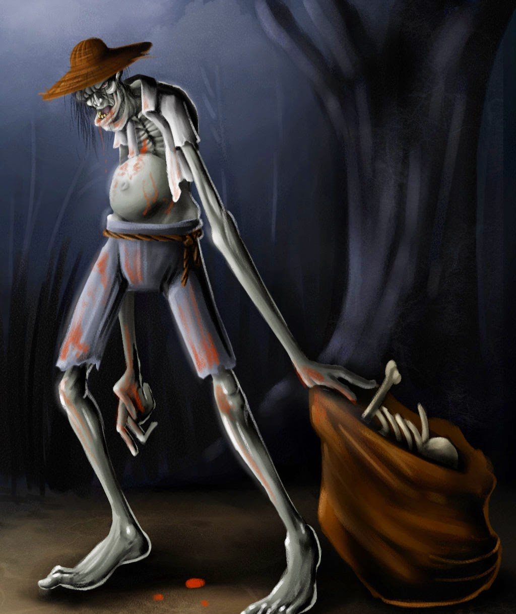 Si lo oyes lejos es porque lo tienes cerca, silbando llega hasta este último puesto del top, la que considero la leyenda más popular del llano venezolano. Un joven vivía felizmente con su esposa, trabajan, vivían del campo y sus frutos. Una tarde luego de una faena ardua de trabajo encontró a su esposa llorando, esta le confeso que el padre de este la había violado, el hombre lleno de rabia e indignación lo fue a confrontar, este no negó el asunto y ambos se enfrentaron a machetazos resultando en la muerte del progenitor. El abuelo al enterarse de tan doloroso hecho, hizo aprender a su nieto, al cual le dio latigazos hasta que no tenía casi carne en la espalda, luego sobre las heridas rocio picante para volverlo loco y por ultimo le lanzo unos perros que tenía para que terminaran de matarlo, pero su mayor castigo fue que después de muerto no pudo descansar sino que quedo confinado a vagar por las noches en busca de aventureros de mala índole para castigarlos. Se dice que es un hombre muy alto (+ de 2 metros) esquelético y que sobre sus espaldas carga un gran saco con los huesos de sus víctimas, su característica más distintiva es su silbido, el cual irrumpe en la noche de manera sobrenatural, si lo oyes cerca es porque está lejos, pero si escuchas su silbido en la lejanía, bueno mejor huye.