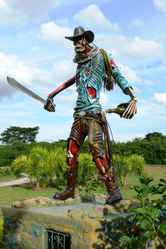 Esa misma noche unos bramidos lo despertaron, encontró en su corral un inmenso toro negro como la noche y con ojos rojos como el sol. Sin prestarle mayor atención al asunto se fue a dormir para su sorpresa en la mañana cientos de vacas pastaban en sus terrenos como aparecidas de la nada misma. Sus negocios comenzaron a prosperar de nuevo y recupero su lugar en la sociedad. Pero a medida que entraba el dinero a su hogar sus hijos comenzaban a enfermar y a morir de maneras extrañas con fiebres que los hacían delirar, la última en irse fue su esposa. Juan arrepentido del trato, agarro todo su oro, lo enterró y salió huyendo despavorido hacia la selva. El diablo en venganza lo convirtió en un espanto, un hombre alto con un machete y que arroja fuego por la boca, desde entonces se le conoce como Juan Machete.