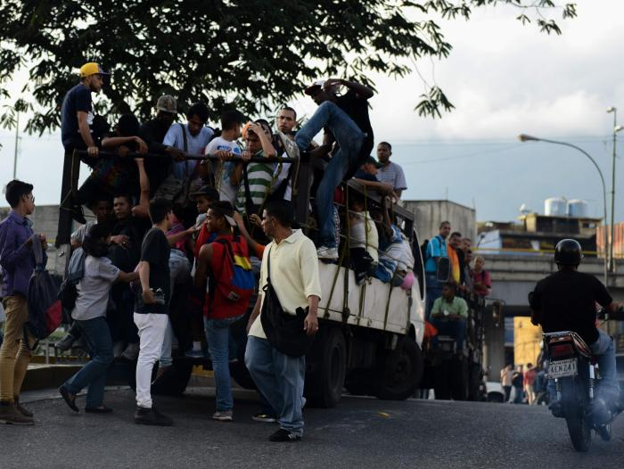 Usualmente llegan camiones y los mas desesperados se montan. Yo aun me niego a montarme y espero no tener que verme en la necesidad.