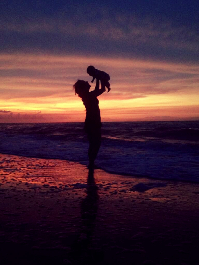 Acá les dejo una foto de mi autoría. Me la tomó un primito a mi y a mi bebé en un bello atardecer en Boca de Uchire, la playa a donde me gusta perderme del mundo con mi bebé, mi esposo y algunas veces toda la pandilla.