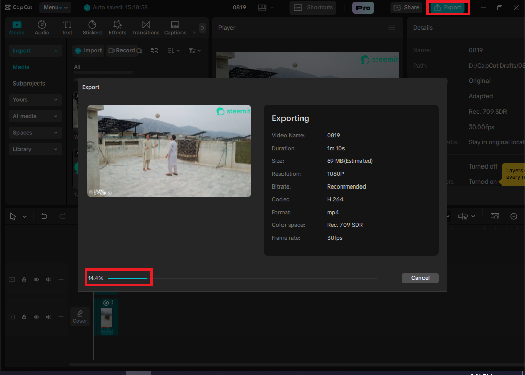 - Now, in the last step, I have exported the video, so for that, I click on the top left corner, which is, and then our export will be done, as you all can see.