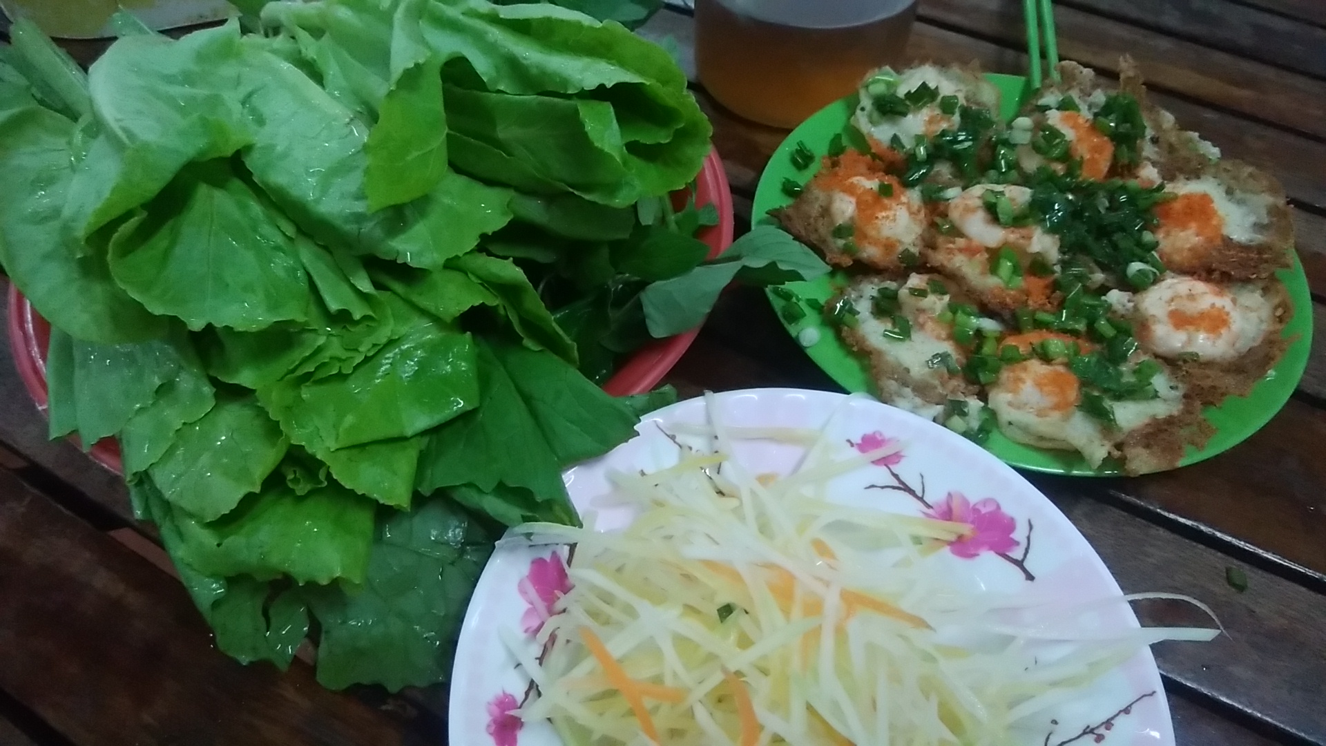 붕따우에서 유명한 새우 팬케익.. 수많은 가게가 있는데 좀 태워서 나왔다.