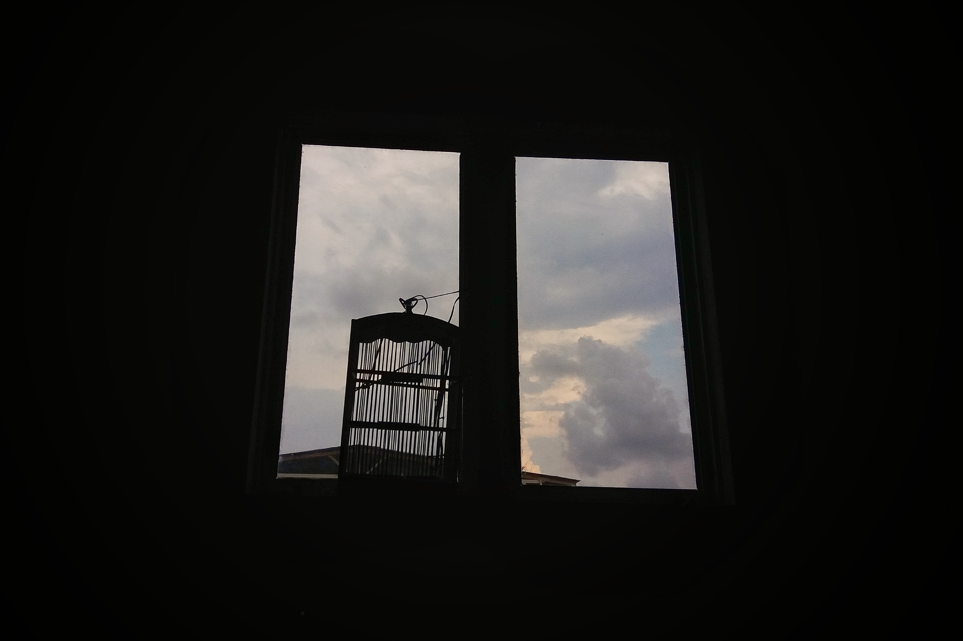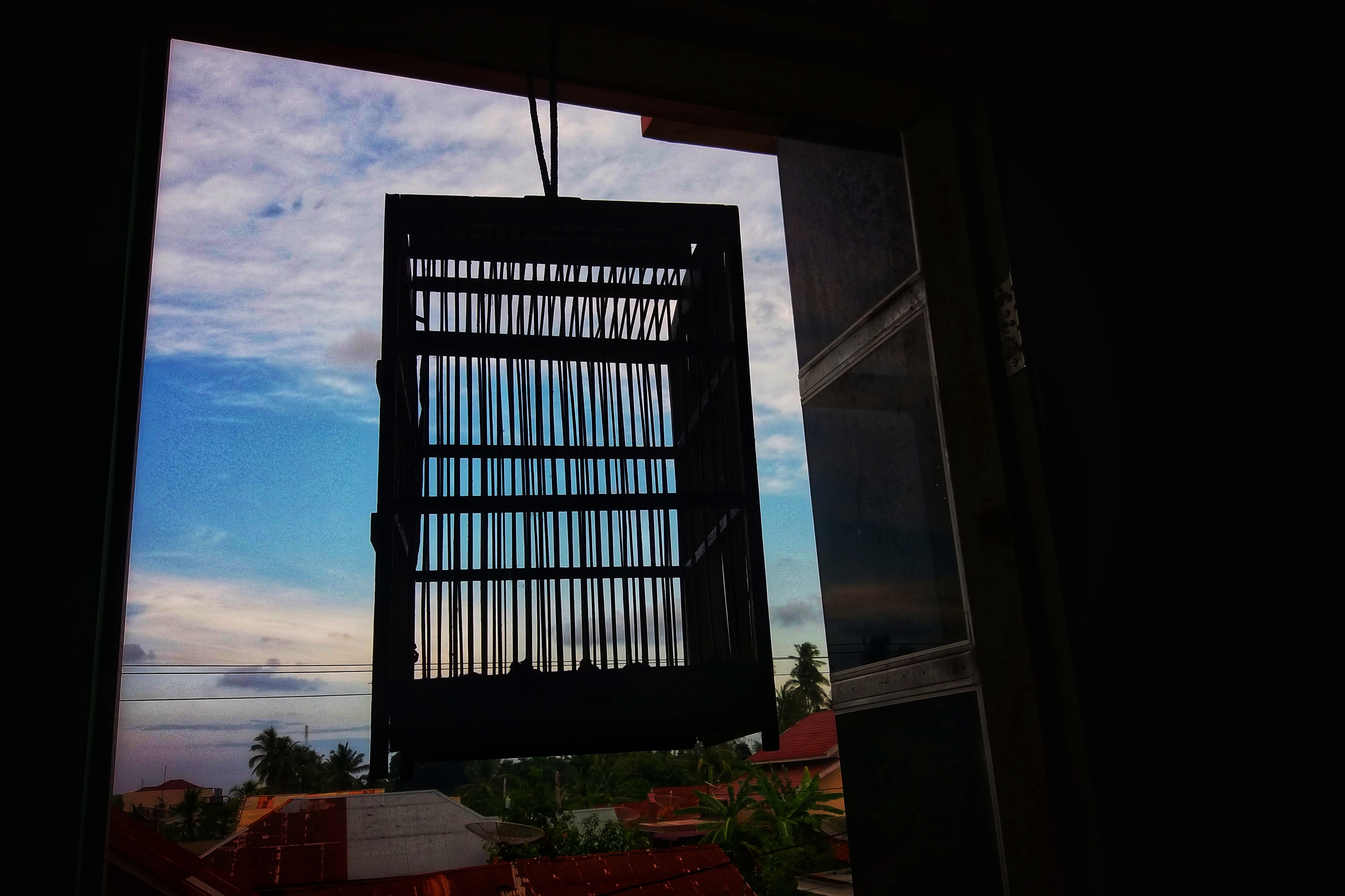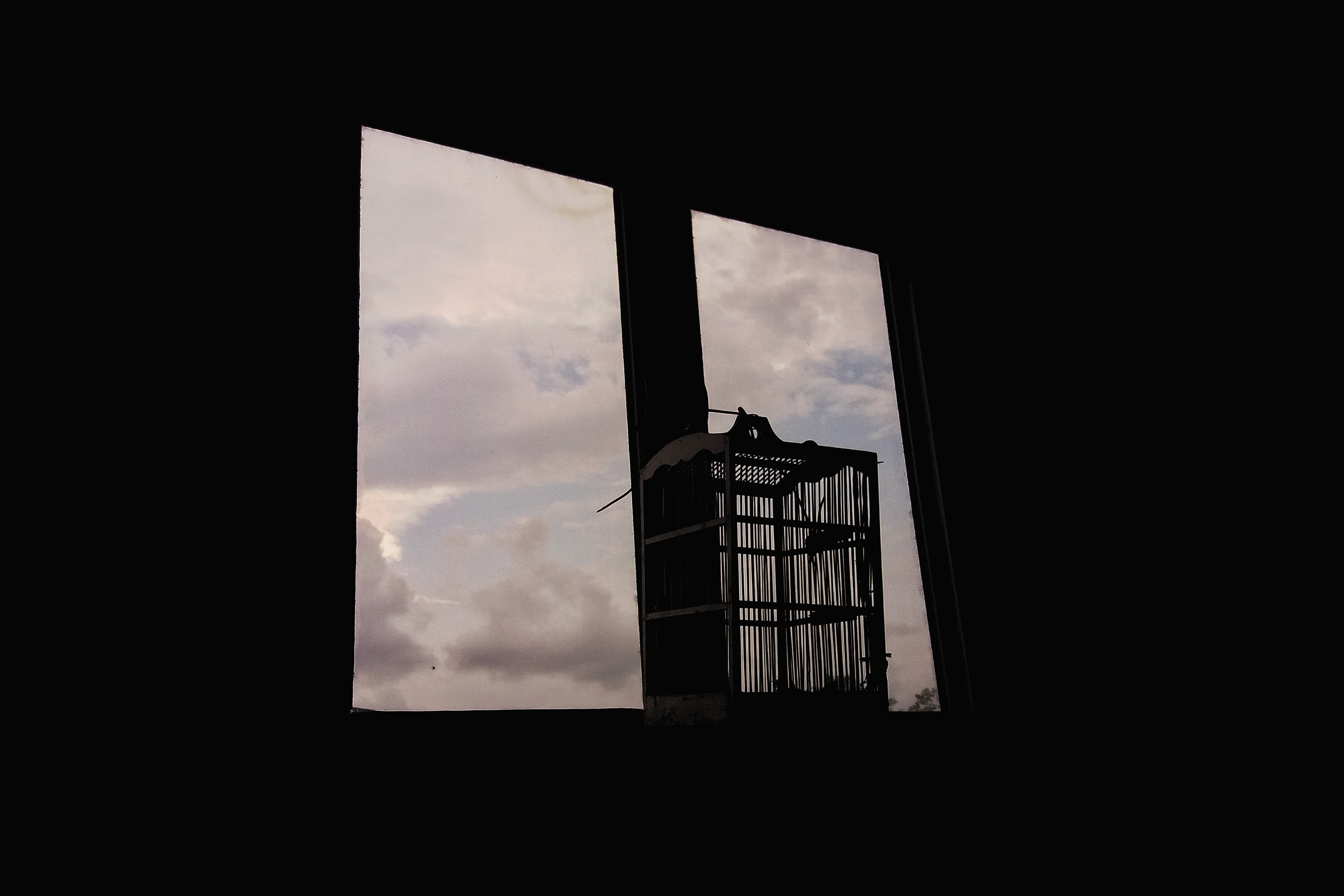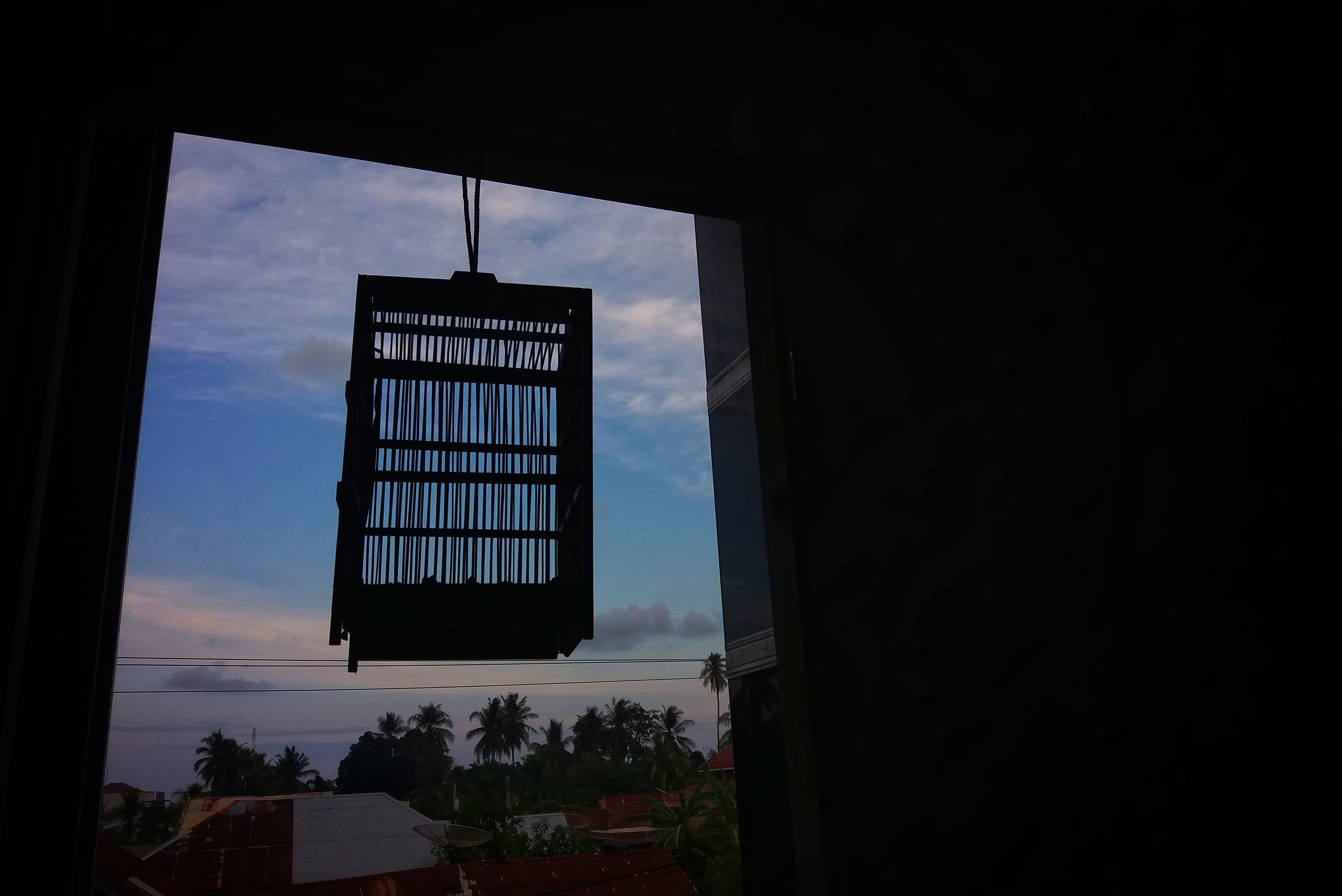 Today I feel like a bird in a caged cage, occasionally I also look at a bird cage outside the window, is this karma because I locked you in? I thought