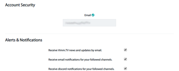 You can now verify your Vimm.TV account by connecting your email address in your account settings. This will allow you to enable email related features like notifications, newsletter, password recovery, etc...