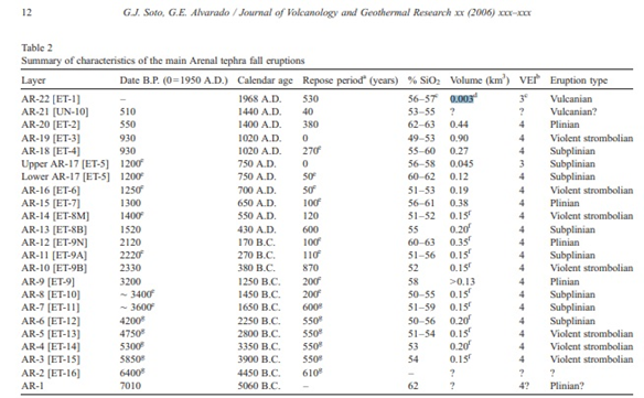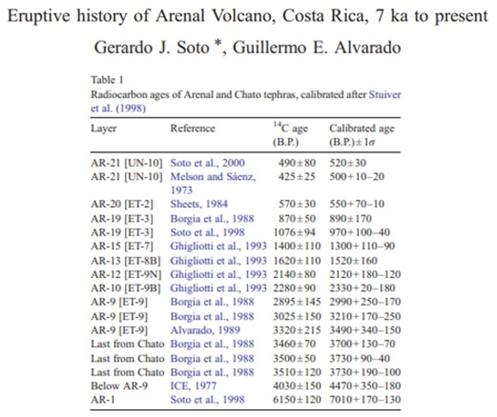 Eruptive history of Arenal Volcano, Costa Rica, 7 ka to present https://pages.mtu.edu/~raman/papers2/SotoArenal.pdf