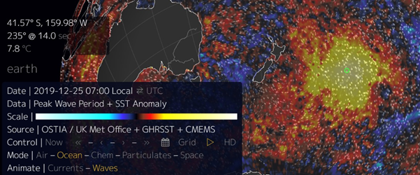 I searched that again in nullschool, and I was able to find the same blob but seemed to have moved west, a little bit closer to New Zealand.
