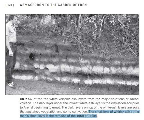 What does that really mean for you and me? The arrow I added in the image marks the line of ash, right about the guy's belt line during the 1968 eruption.