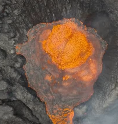 Fascinating drone footage looking down into a volcanic eruption from above.