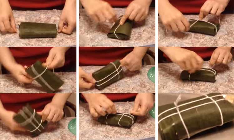 Ate las hallacas con el hilo previamente cortado (de aproximadamente 1 metro y medio de longitud).