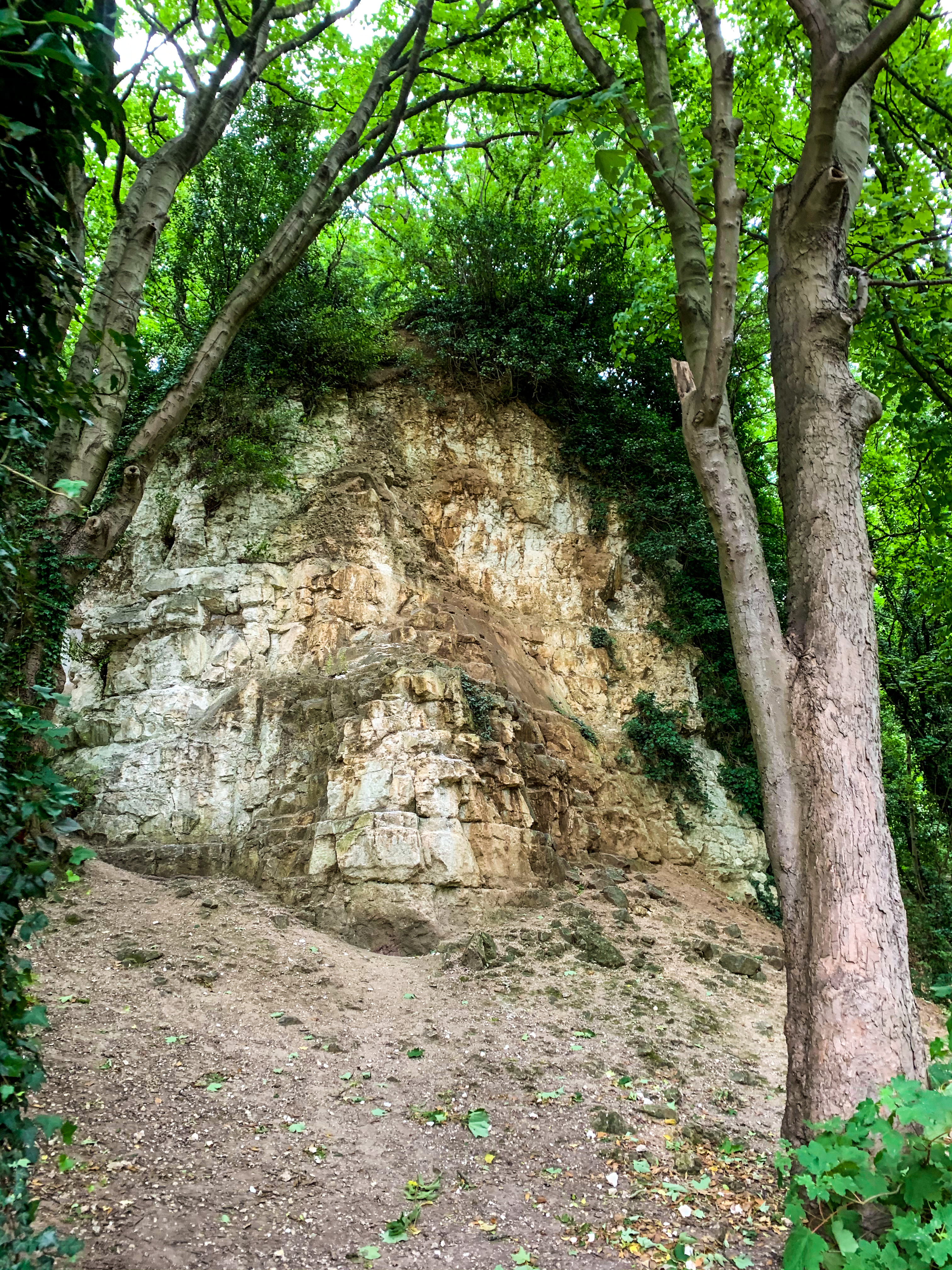 The walk starts in the car park but go through a gate and down a massive amount of steps into the old quarry below. The trees towering over you and the slopes of the quarry a vibrant green with stone showing through.