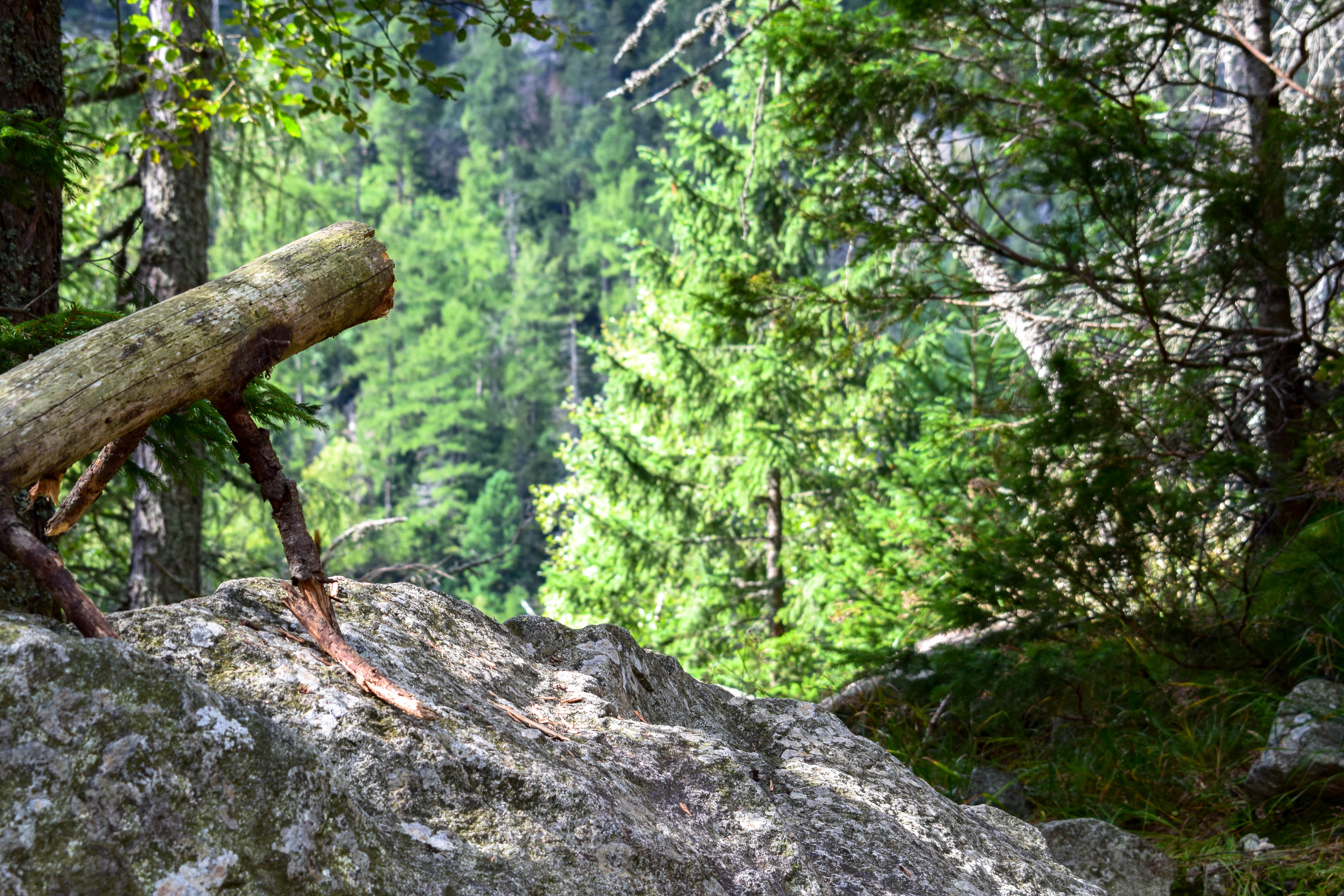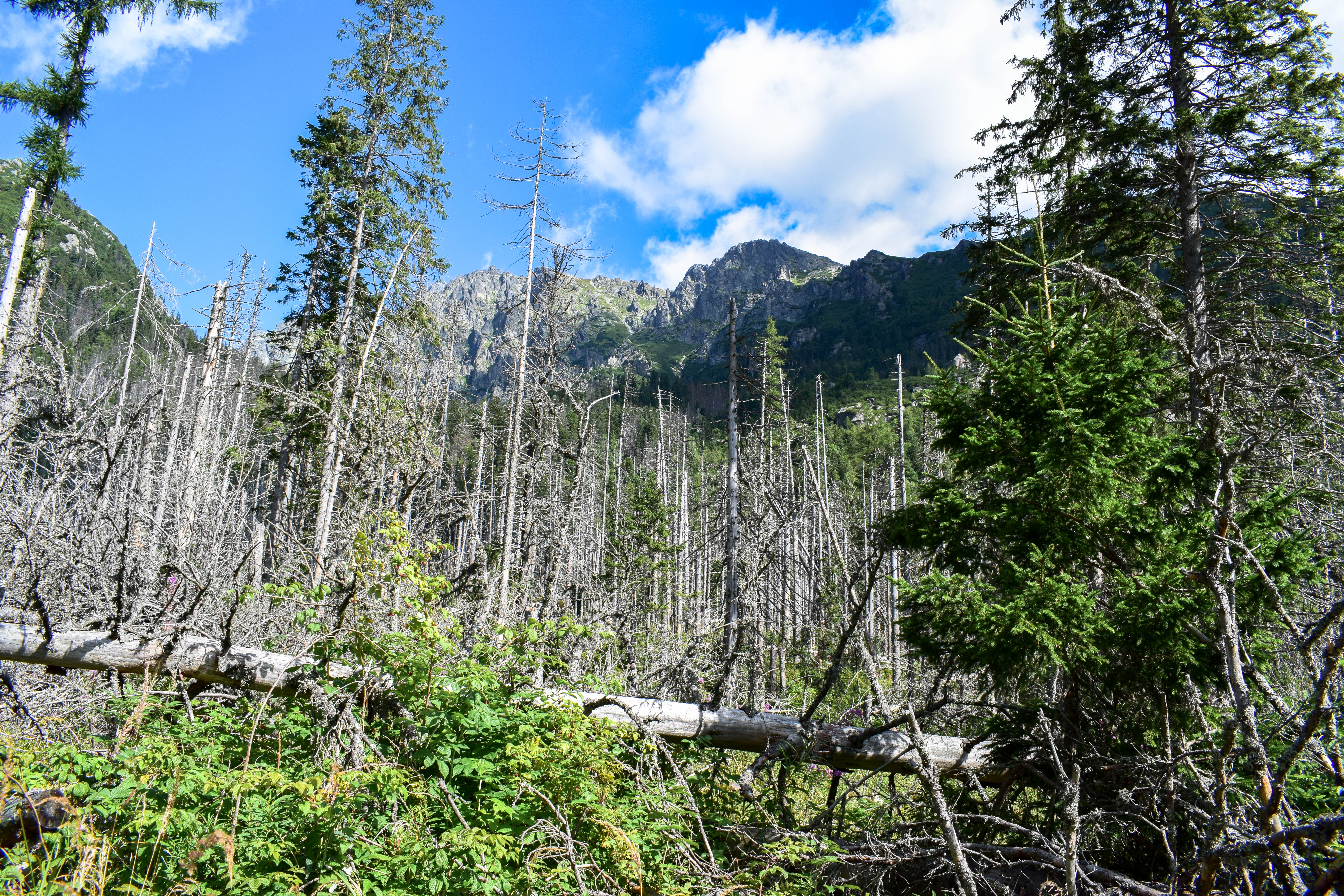 There was a huge storm less than 10 years ago and a large part of the forest was destroyed. There are still many trees reminding us of this event. They lost their needles and I think that many of them break off each year.