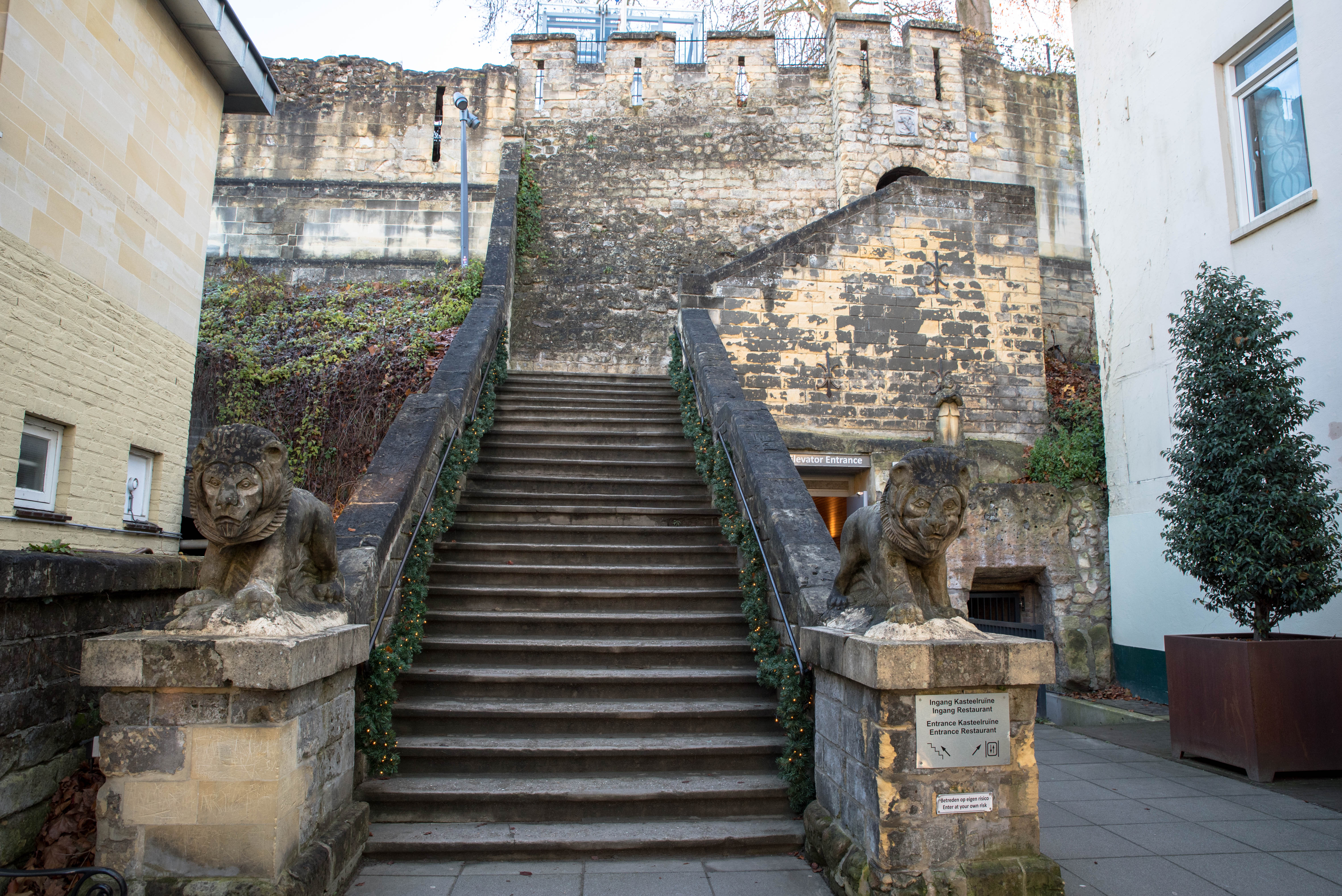 It took me around 20 minutes to get to Valkenburg. Half of the place was closed due to the Christmas markets across the city, so it took me another 20 minutes to find a parking garage that was not that far away from the castle ruins. I put on my winter jacket, scarf and gloves and was ready to go outside. It turned out that I was still quite far away from the ruins as the entrance was not exactly where I thought it would be and I had to walk around the ruins before getting in.
