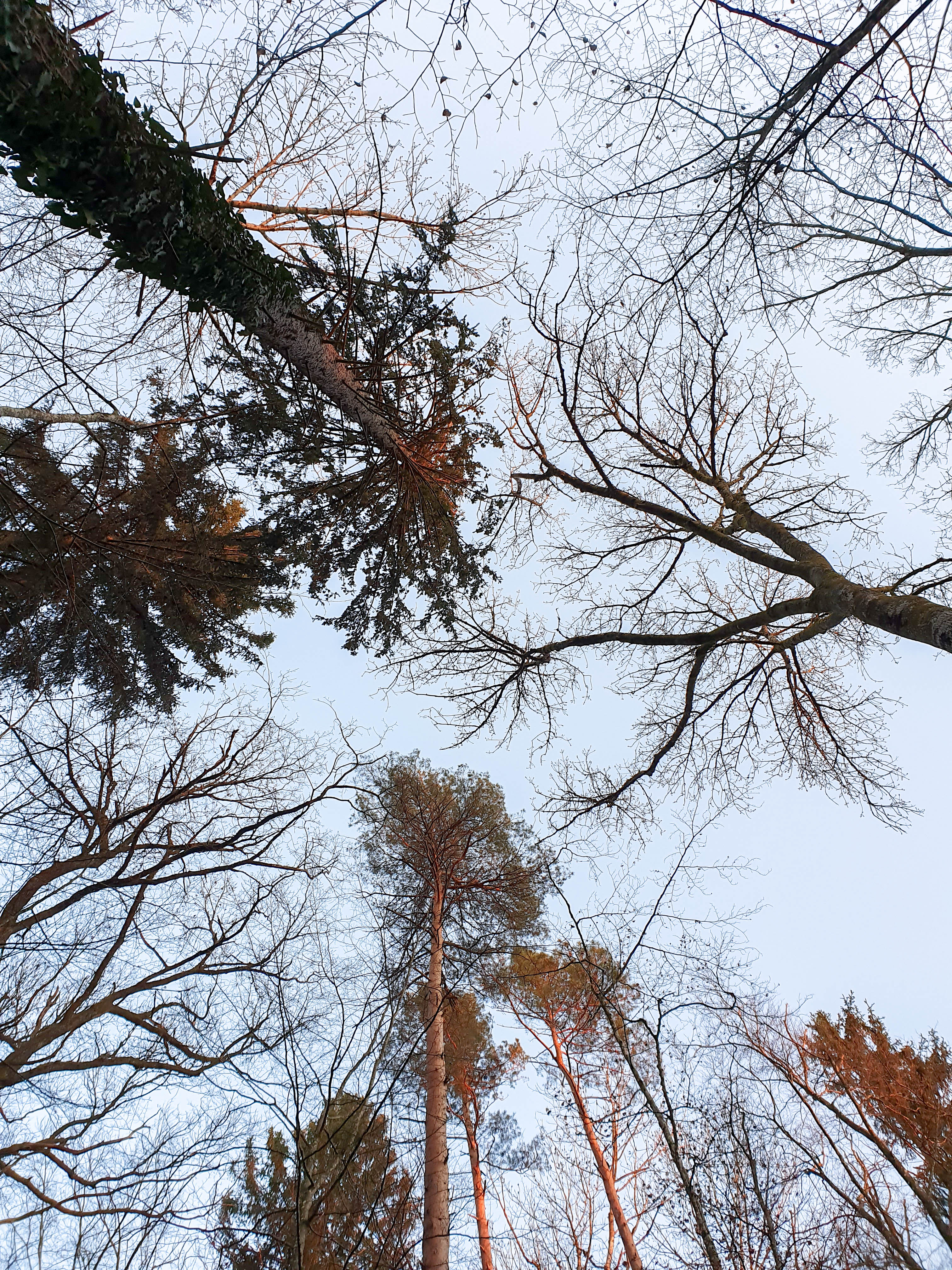 I lay down on a bench and observed the trees towering above my head. I wanted to stay in that position much longer but it was getting cold, so I started to walk again...