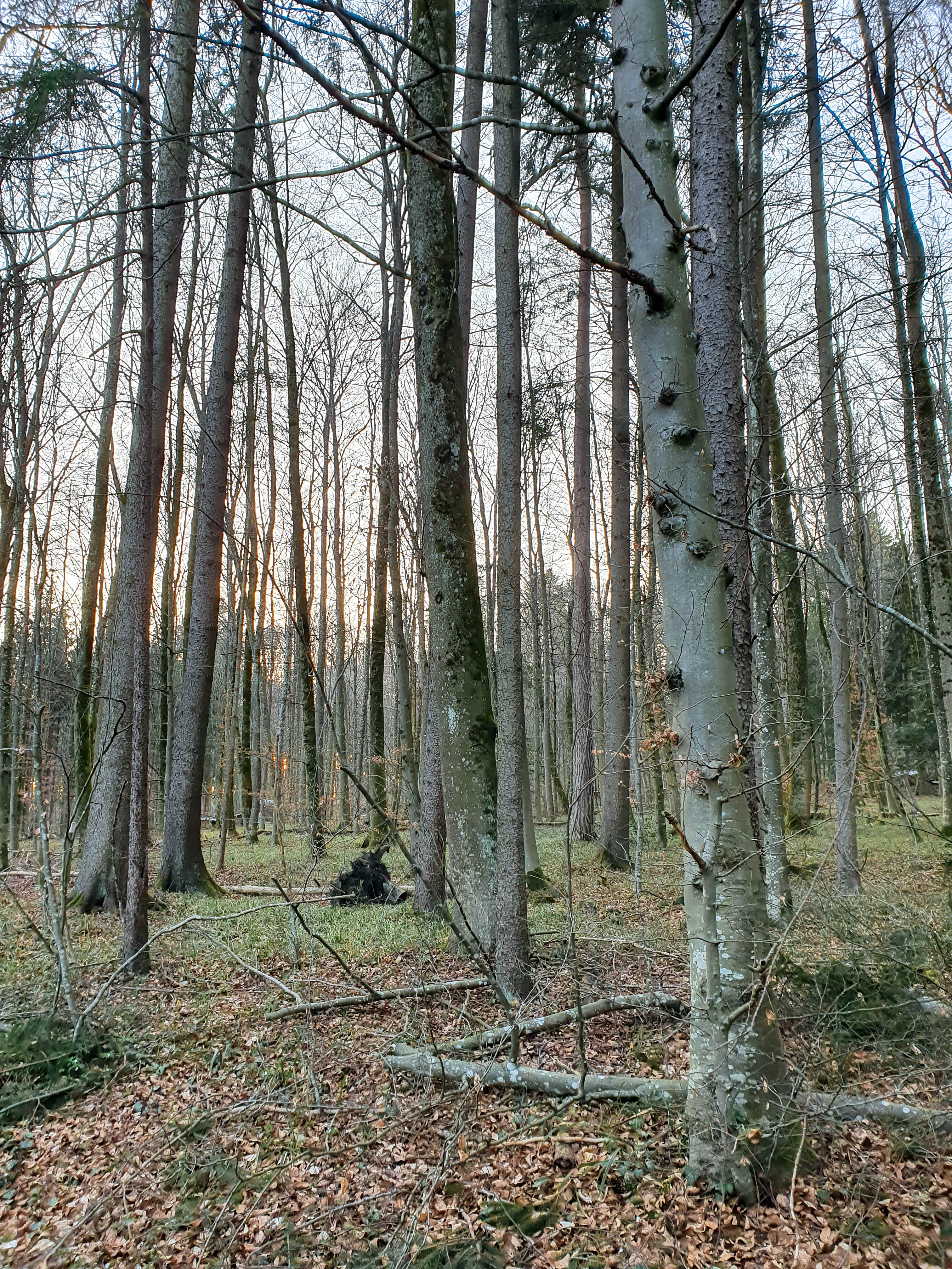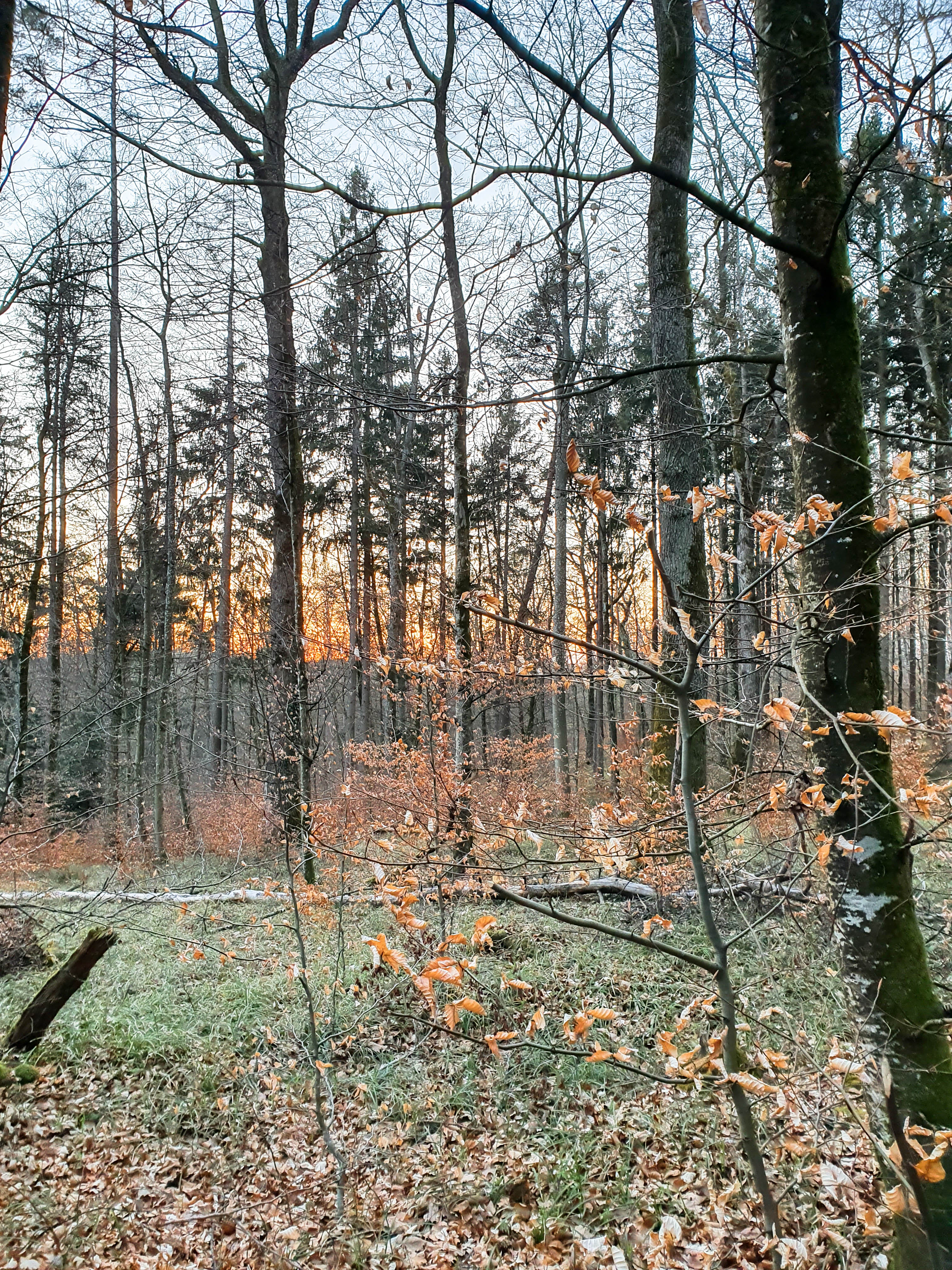 I have also started to work out every day to compensate for not being able to go for long walks. I feel great and I have a lot of energy, but my back seems to be missing the walks. It started to hurt me at the beginning of the week and therefore I decided to go for a walk anyway. We went a few days ago to the forest nearby. The sun was going down and there was no one around us so we could enjoy some quality time in nature.