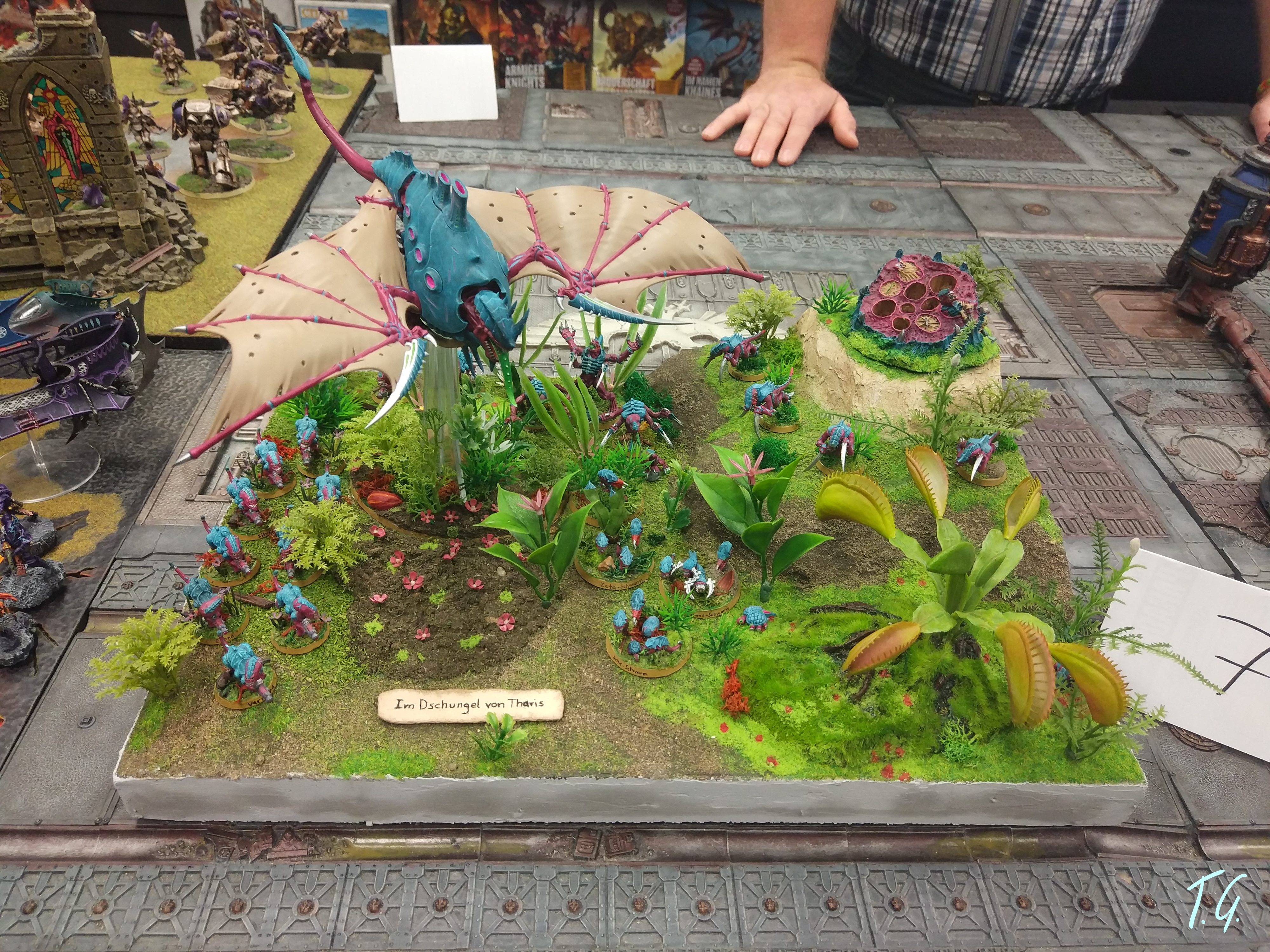 There were six other competitors, four of them with display boards and two with their plain armies. My display board was by far the brightest one. The other armies were Dark Eldar, Nurlge, Death Guard, Orks, Custodes and Space Wolves.