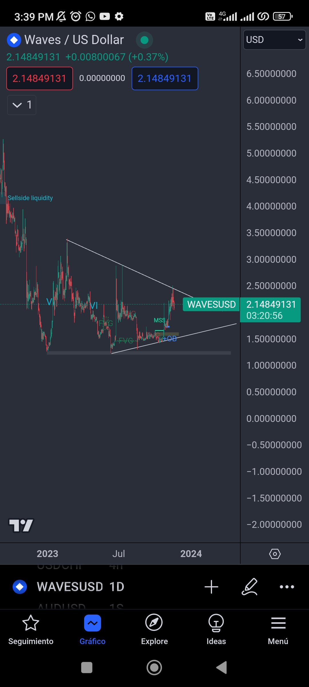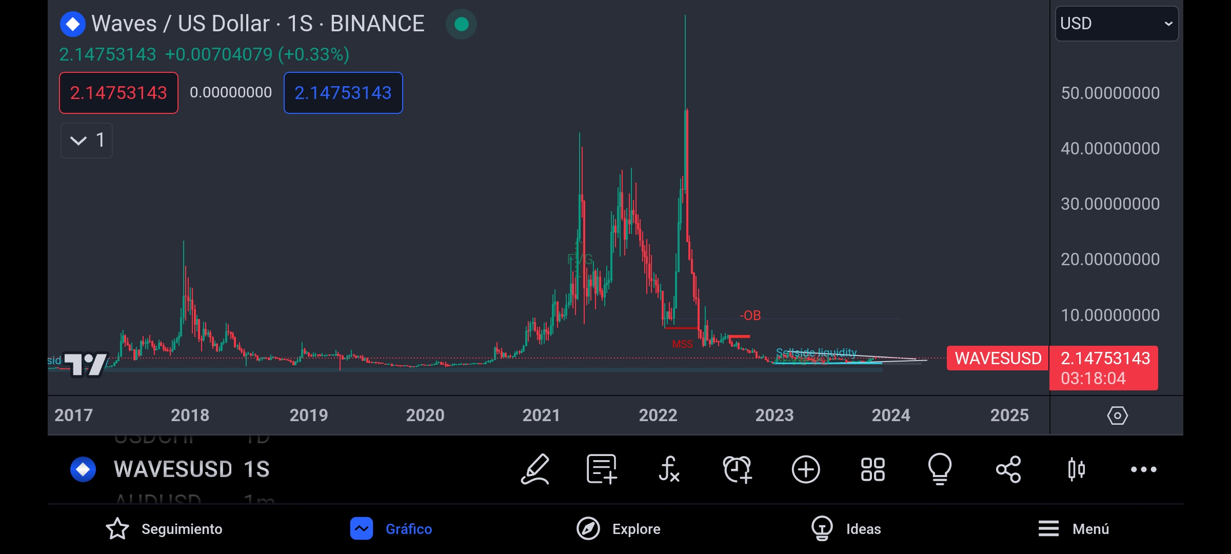 Saludos. Aquí les actualizo el precio de waves al día de hoy con un alto anterior de 2.50 la semana pasada. Pudiéramos ver el precio de waves por encima de los 60 dólares que fue su máximo histórico.