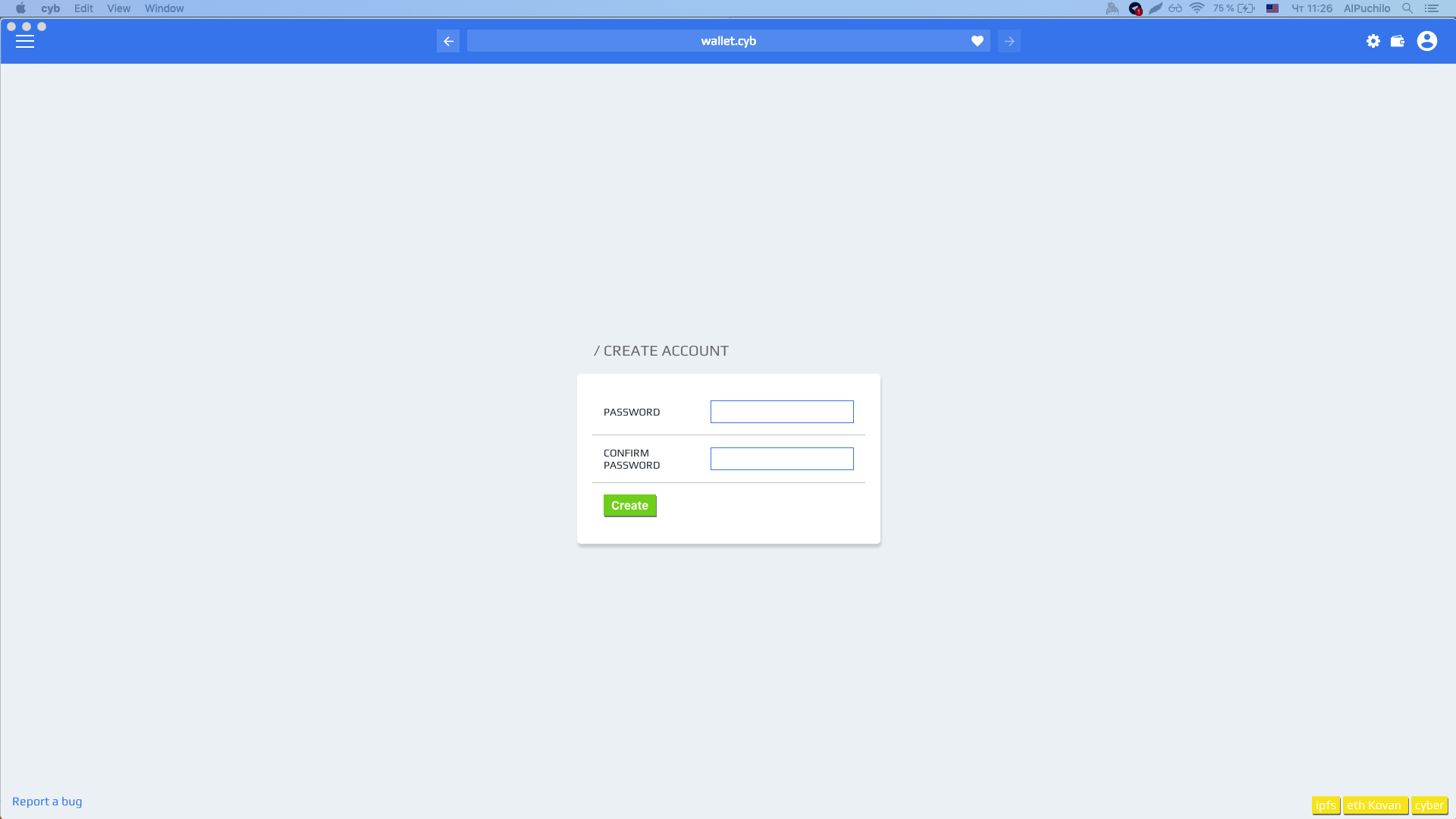 Cyb will offer you to create the password. Create and confirm it. And PLEASE store that. This is your key to Cyb.