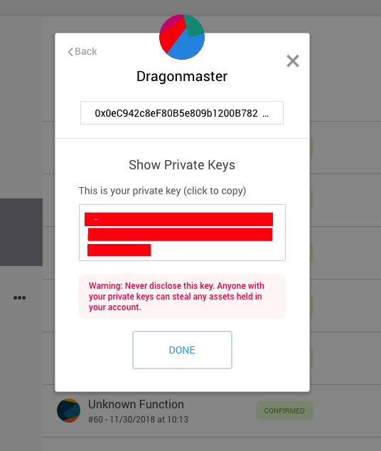 Copy your private key to clipboard and go back to pure web3 browser ;) I mean Cyb.