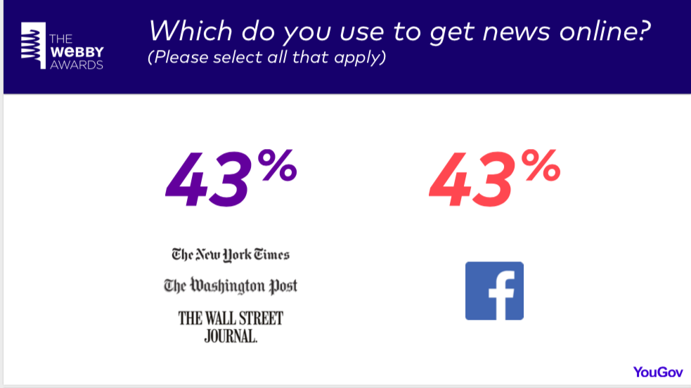 - The Washington Post, The Wall Street Journal and Facebook tied as the number one sources for news. Yet 52 percent of people don't trust information they get from Facebook.