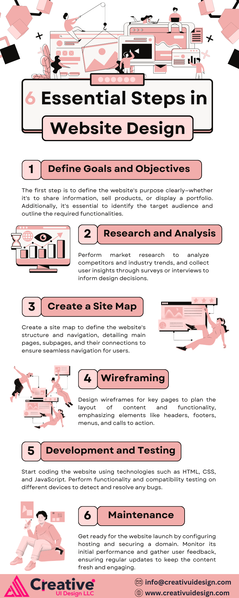 Designing a website? Start by following the essential steps in website design, like setting clear goals and knowing your audience. Research competitors, create a solid site map, and draft wireframes for a smooth layout. Develop the site with clean coding, test it thoroughly, and launch with confidence. Don’t forget ongoing maintenance to keep things fresh and user-friendly!