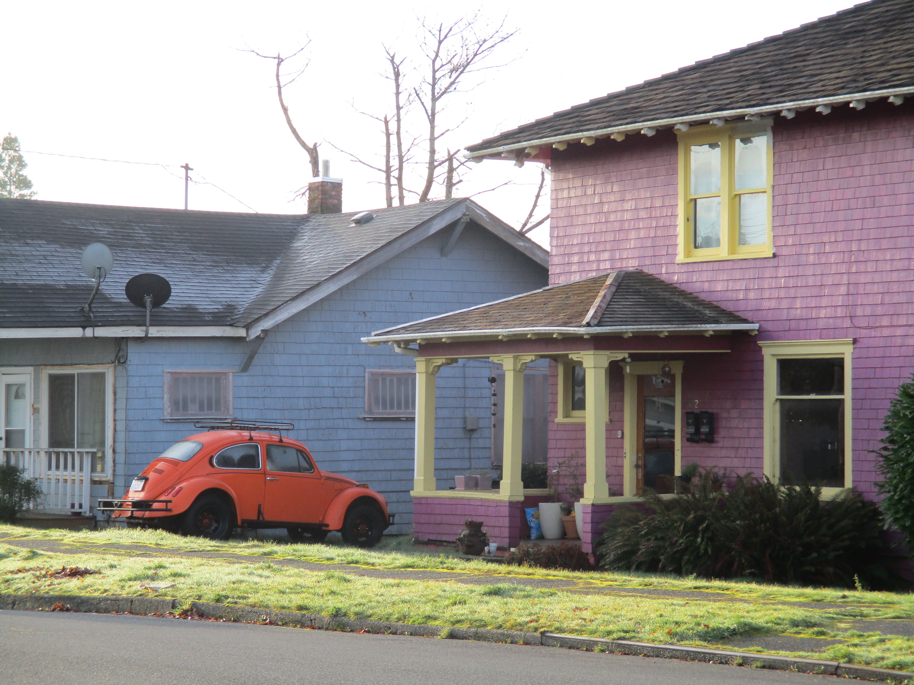 Hoquiam is replete with brightly and unconventionally colored homes like this, in a variety of architectural styles; itʼs the characteristic of town that I first fell in love with when I moved here five years ago. With the bright colors and little homes, especially those nested in the hills among the evergreens, the town felt to me like the Shire in the Lord of the Rings movies.