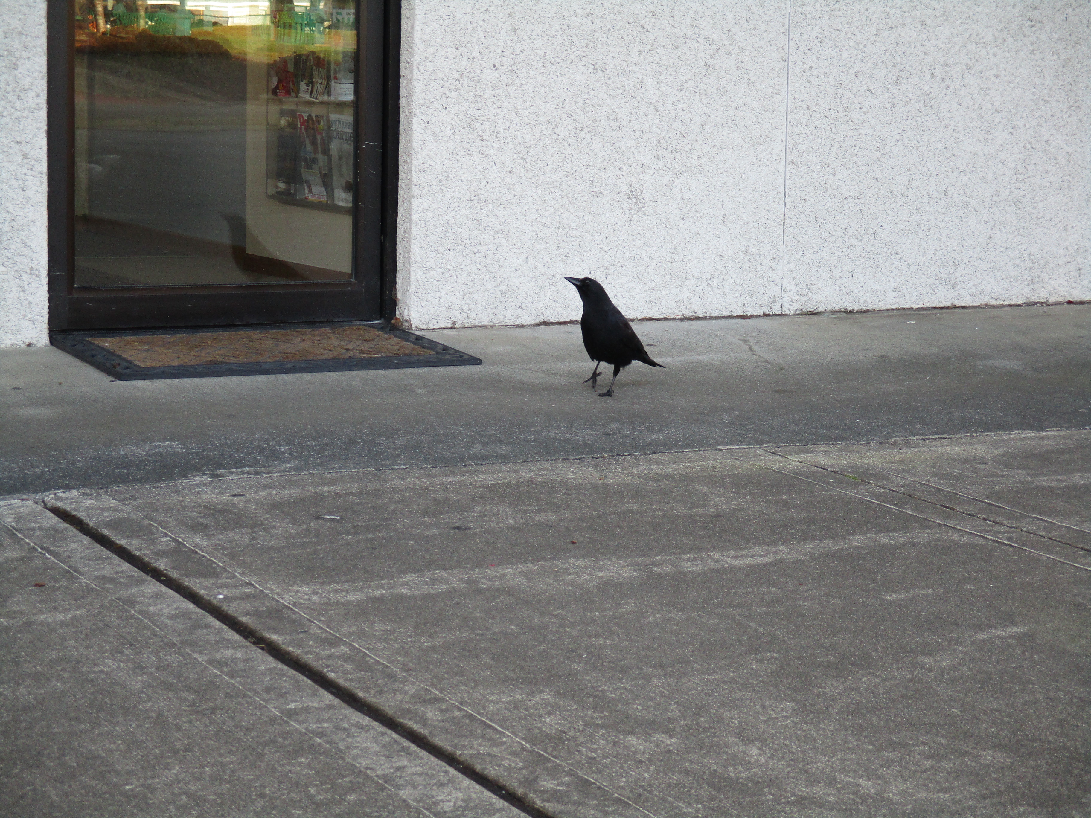 A block farther down J Street, I interrupted Mr. Crow checking his plummage in the glass door on the dentistʼs office.