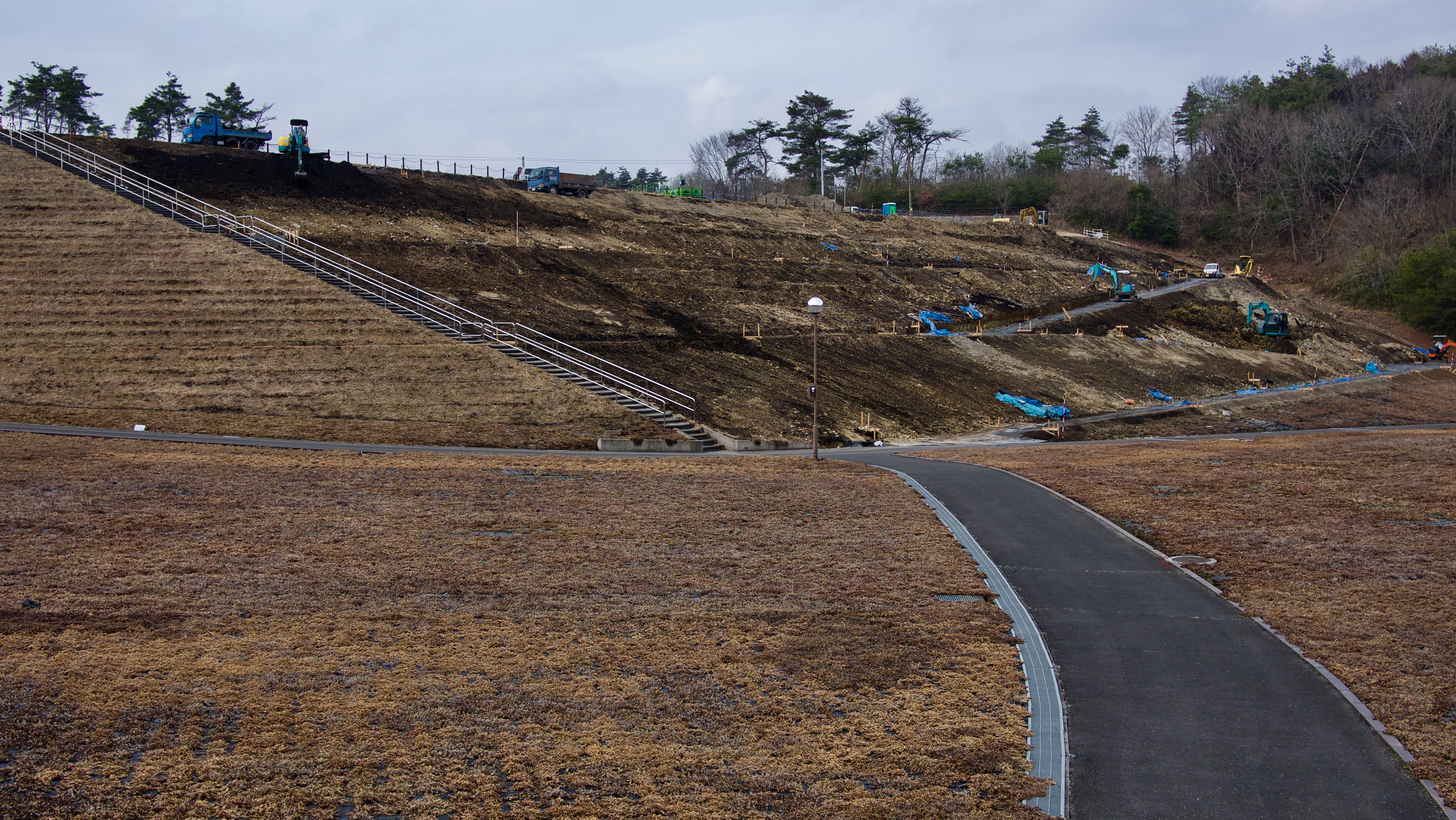 I mentioned a couple of weeks ago that the end of winter is construction season in Japan. That's doubly true for seasonal parks like one. Each one of those blue or yellow spots is a massive earth-moving vehicle helping to prepare a new walking path for taking in the flowers. Can't wait to be able to show it to you.